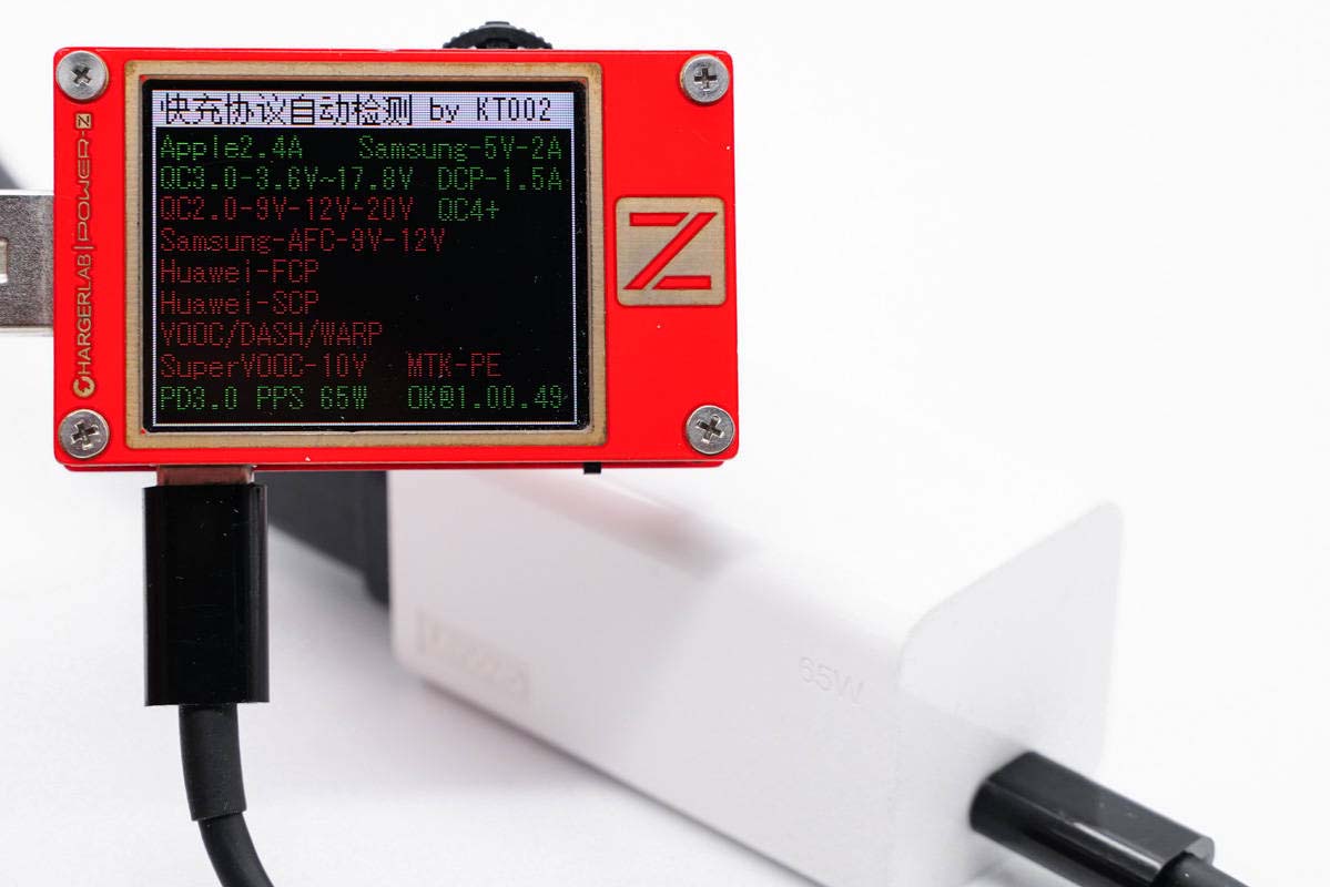 使用ChargerLAB POWER-Z KT002测得USB-C口支持Apple 2.4A、Samsung 5V2A、DCP协议,以及QC3.0、QC4+、PD3.0、PPS快充协议。
