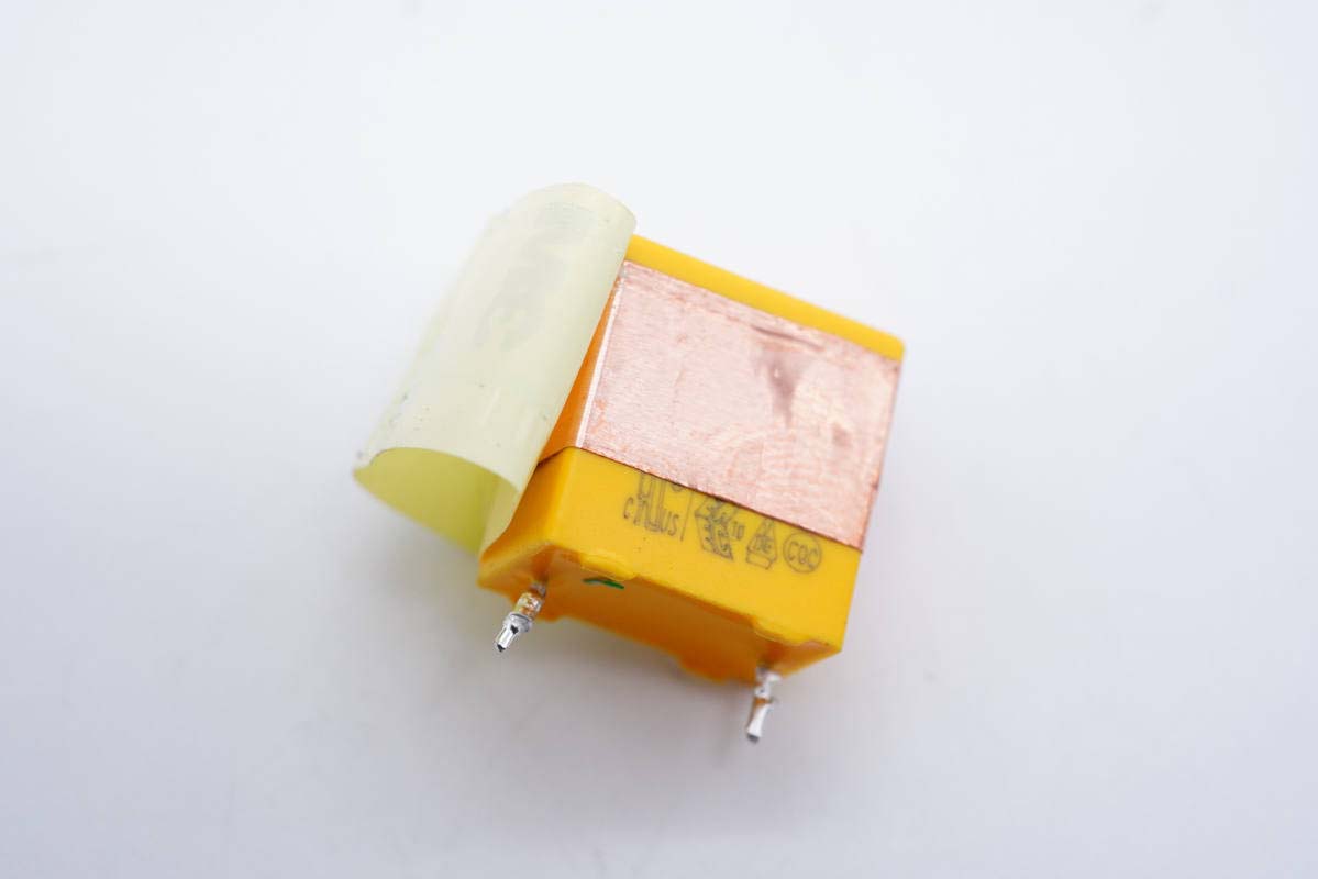 安规X电容套有一圈铜箔,并包裹绝缘胶带。