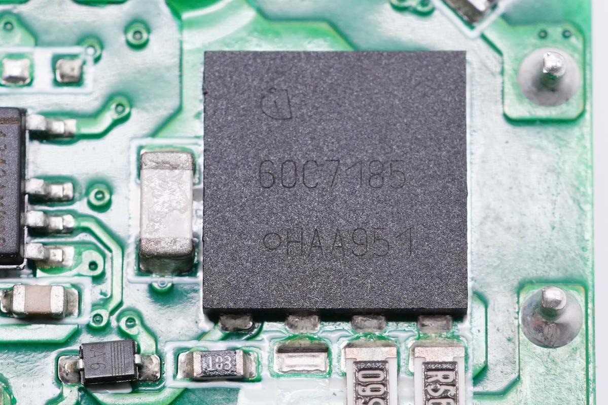 充电头网通过拆解了解到,充电器PCBA模块规划得非常简洁有层次,采用安森美NCP1342搭配英飞凌IPL60R185C7高压MOS,以及MPS MP6908搭配安森美FDMS86181同步整流管组成开关电源,通过通嘉LD6612QM协议芯片控制输出电压。采用一颗艾华大容量电容进行输入滤波以及两颗固态电容进行输出滤波,整体用料也很扎实。