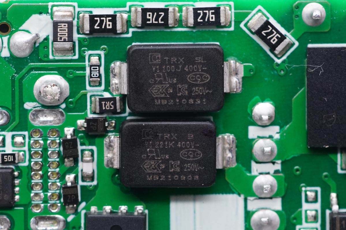 两颗贴片Y电容来自四川特锐祥科技股份有限公司,具有体积小、重量轻等特色,非常适合应用于氮化镓快充这类高密度电源产品中。
