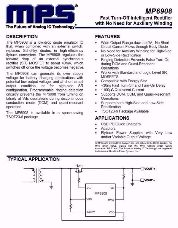 充电头网了解到,采用MPS MP6908的还有RedmiBook Pro 15笔记本标配100W充电器、宜家40W 2A1C桌面快充充电器、联想笔记本65W PD快充充电器、三星65W PD快充充电器、闪极100W 3C1A氮化镓快充充电器、安克65W PD快充、小米65W GaN充电器此外MPS同步整流芯片还被小米9 Pro原装45W快充充电器、thinkplus 45W USB PD充电器、紫米65W 2C1A桌面PD快充充电器等数十款产品采用。