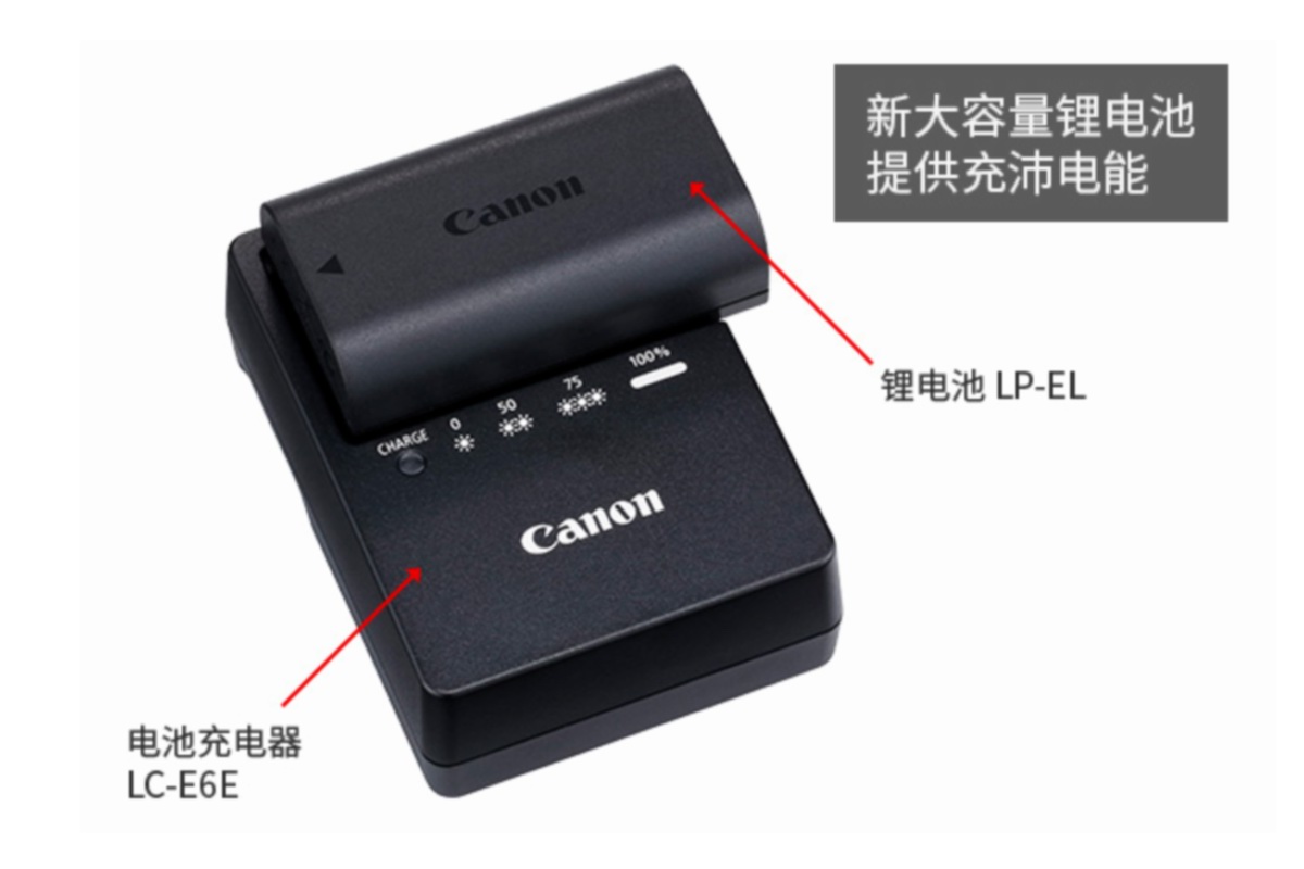 佳能SPEEDLITE EL-1闪光灯采用一块LP-EL锂电池供电,LP-EL内置两节锂离子电芯串联组成电池组,电压平台7.2V满电电压为8.4V,可提供持续的大功率输出。LP-EL锂电池容量为1920mAh能量14Wh,相比起5号电池续航能力大幅度增加,并且LP-EL锂电池使用常见的佳能相机充电器充电,用户无需额外携带闪光灯电池充电器。