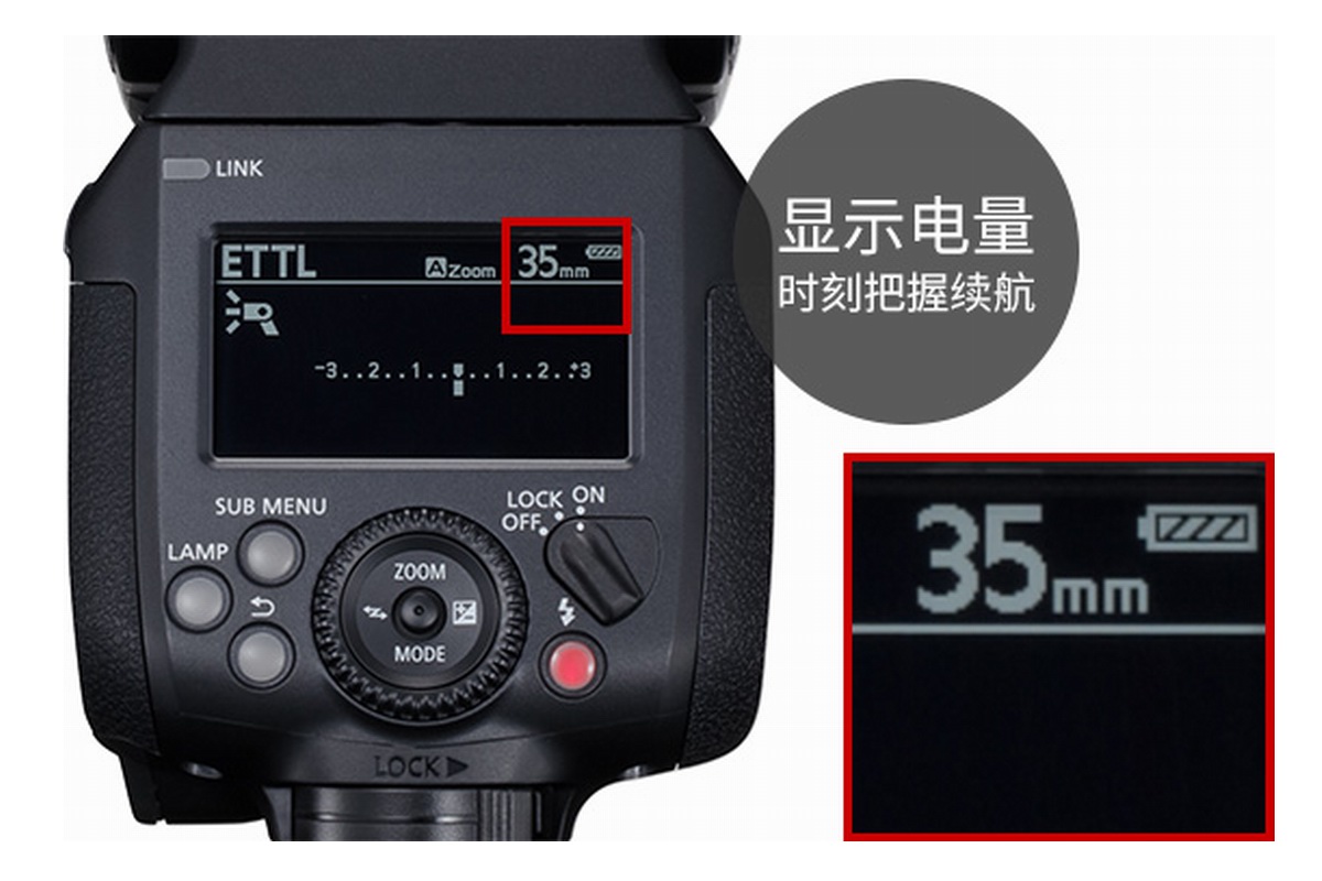 精彩瞬间转眼即逝,佳能SPEEDLITE EL-1闪光灯采用十字操控键可快速进行闪光模式、变焦、闪光补偿、联动拍摄等各项设定,便捷的操控让摄影师迅速做出反应。液晶屏幕上简单直观的用户界面显示各种参数设定,并显示闪光灯当前锂电池的剩余电量,方便摄影师更换电池,无需猜测电量一切尽在把控中。