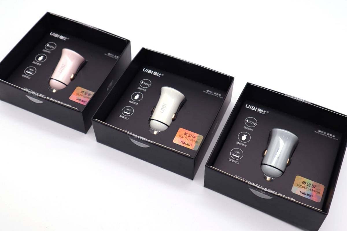 和常规产品包装盒不同,UIBI柚比这款车充的包装盒采用橱窗风格设计,有三种款式可选。