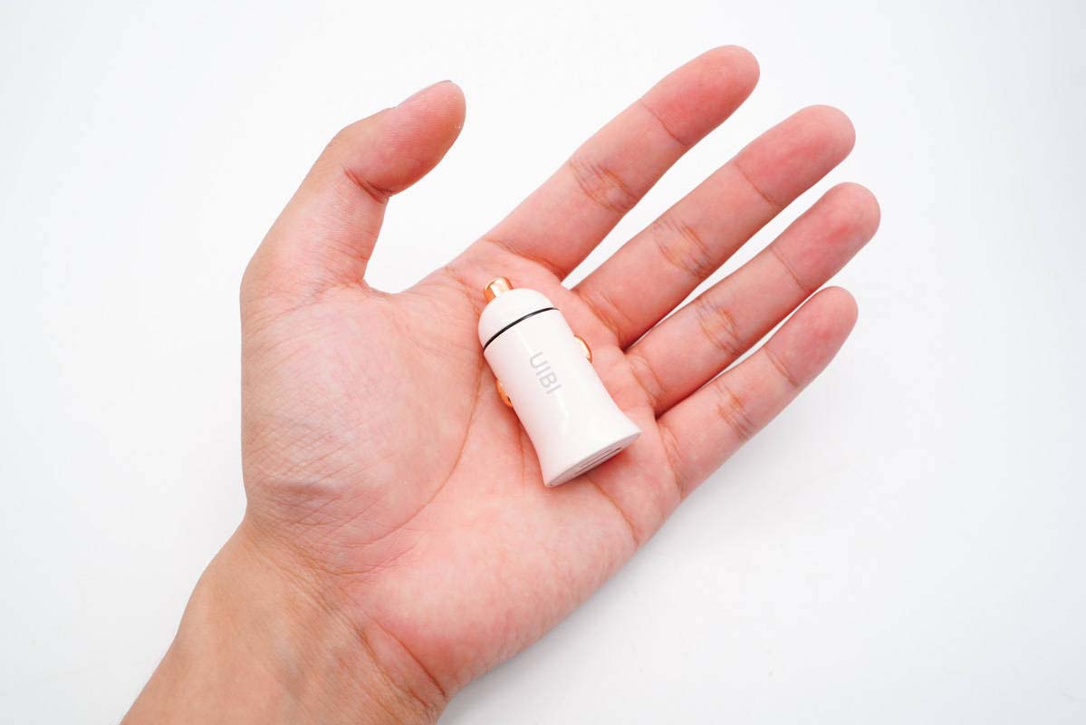 UIBI柚比新款30W迷你车充配色上运用设计圈流行的高雅色系,莫兰迪色,延续莫兰粉、温莎白、山脉灰三个品牌色,小巧的机身外壳为铜合金加PC材质,表面喷刷配色涂料,精瓷工艺的运用,在手感上有如玉石般的温润细腻,颜值也很高。