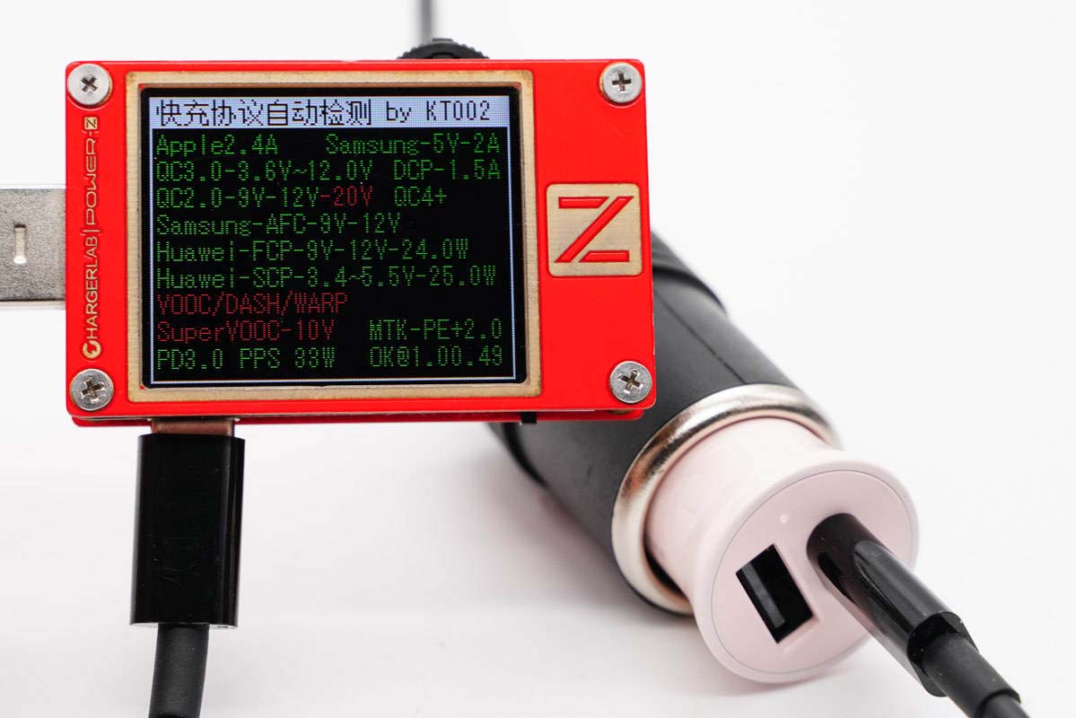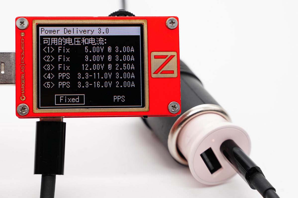 使用ChargerLAB POWER-Z KT002测得USB-A口支持Apple 2.4A、Samsung 5V2A、DCP协议,以及QC2.0/3.0、AFC、FCP、SCP、PE2.0快充协议。