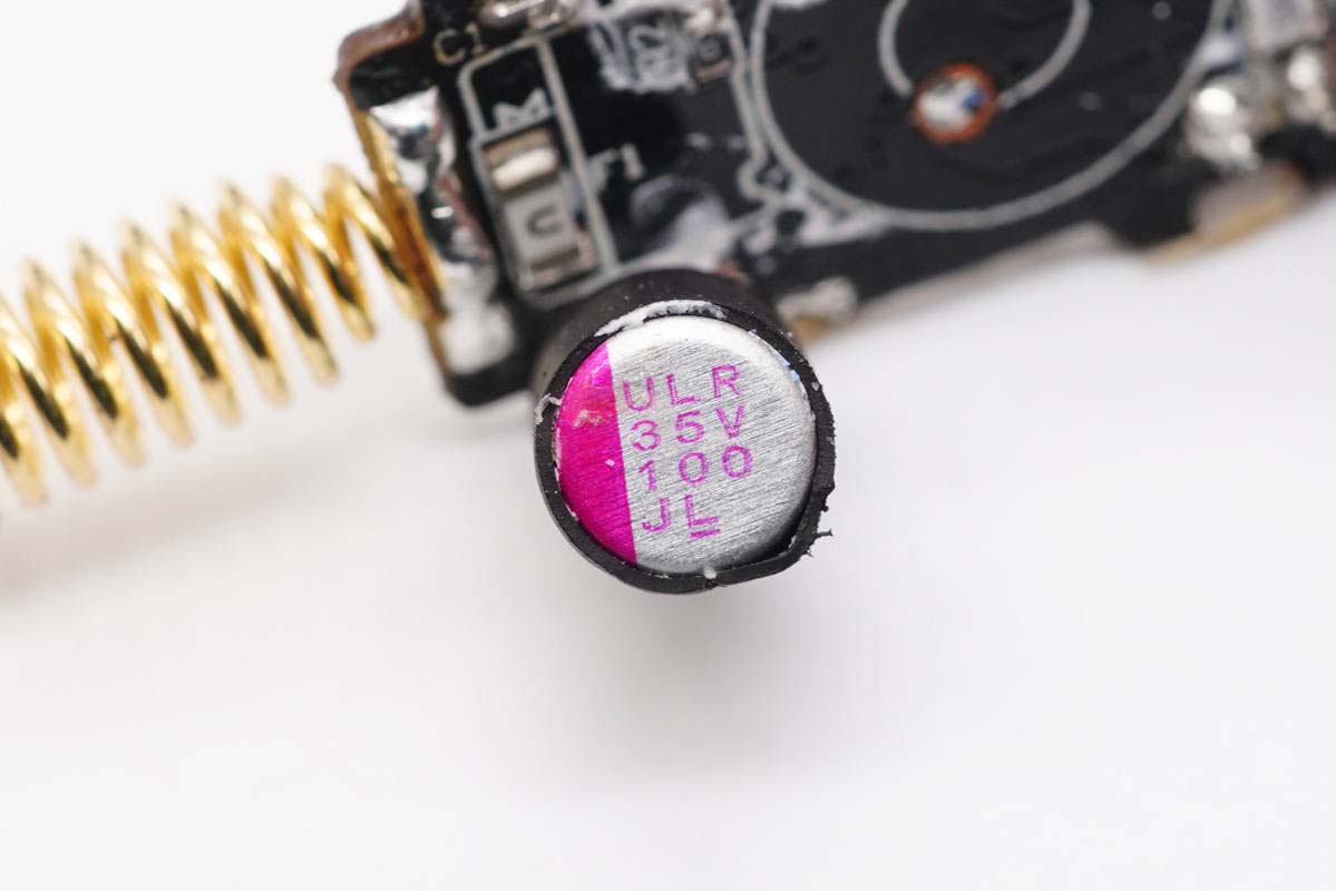 输入滤波固态电容特写,万裕ULR系列,35V 100μF。