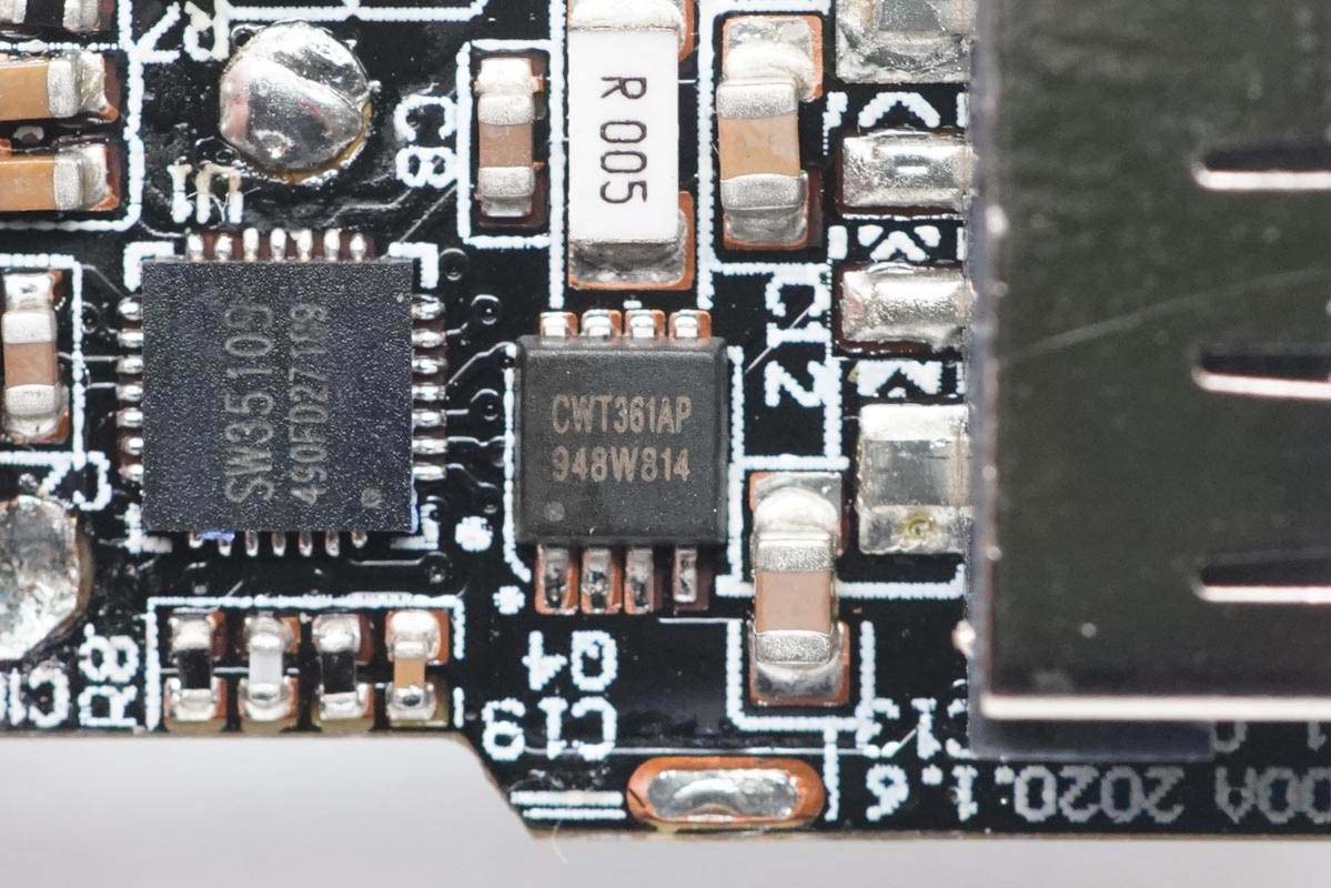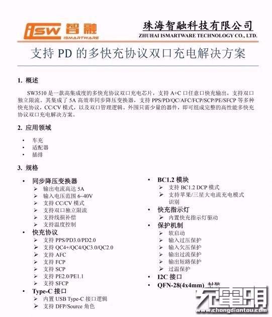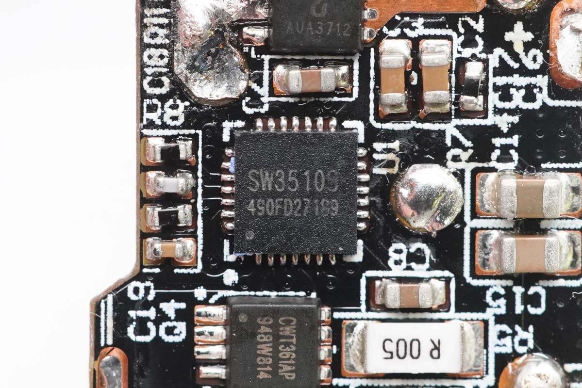 降压协议IC采用智融SW3510,用于1A1C接口输出电压控制。智融SW3510是一颗内置有USB-C口识别及多种快充功能的高集成度双口充电芯片,支持A+C口任意口快充输出,支持双口独立限流。