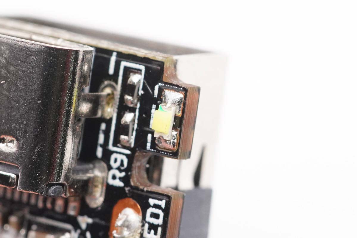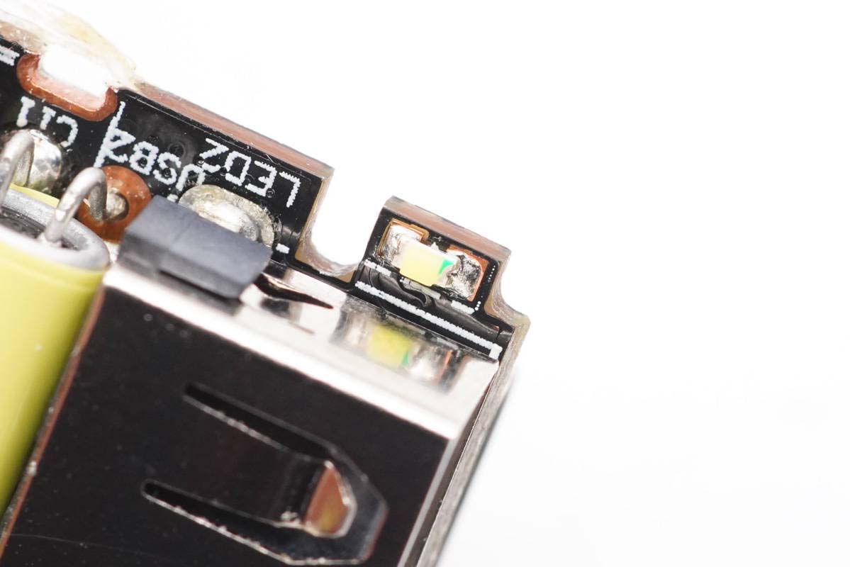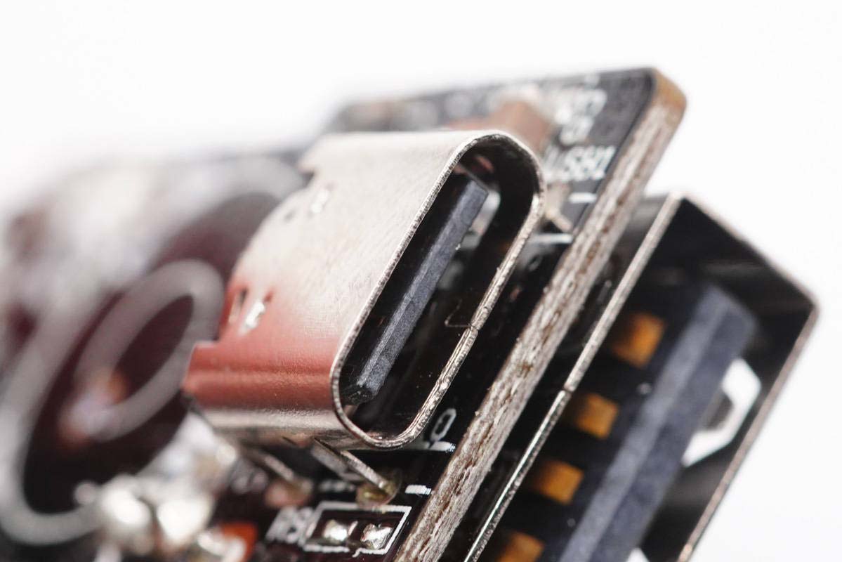 输出顶面采用PC材质塑料板封装,配备1A1C接口,均为黑色胶芯,右侧设有LED指示灯。