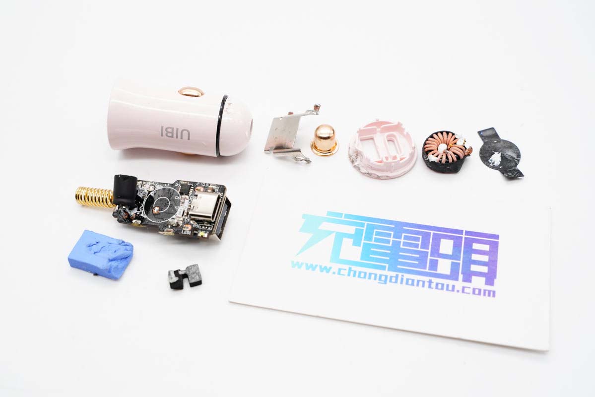 近日, UIBI柚比推Me时代车充的“心”选择。针对个性新一代出行快充需求,融入自己独特的美学设计。推出一款精瓷黄金版30W迷你双口车载快速充电器,为有格调追求的用户提供了另一种选择。这款精瓷车充配备的便是时下热门的1A1C双接口,支持30W PD快充、18W QC快充、华为22.5W SCP快充,满足各大品牌手机车上快充需求。下面充电头网就对这款车充进行拆解,看看内部用料设计又是如何?