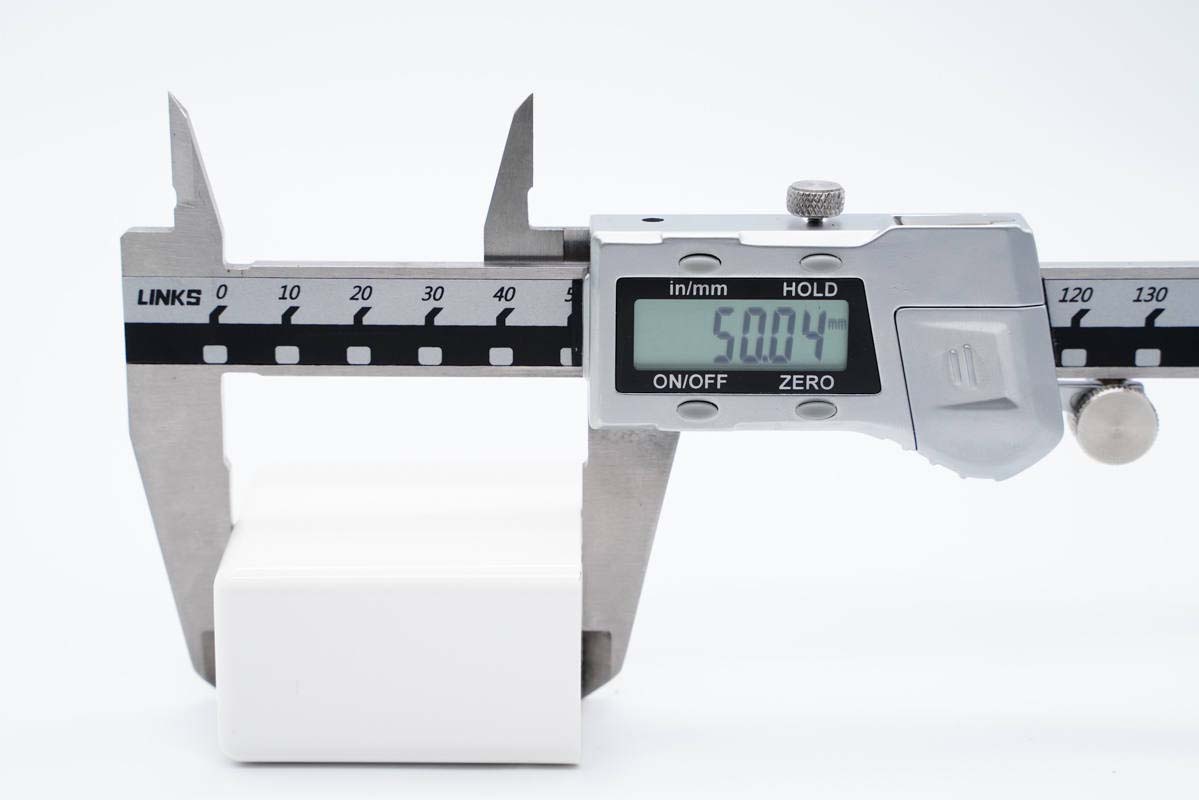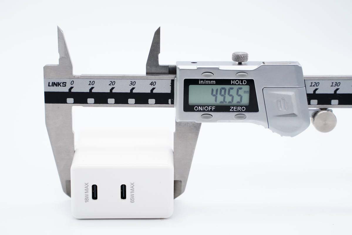 使用游标卡尺测得充电器机身高度为50.04mm。