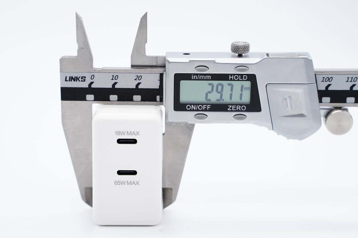 厚度为29.71mm。通过三维可以算得充电器体积约为73.67cm³,功率密度约为0.88W/cm³。