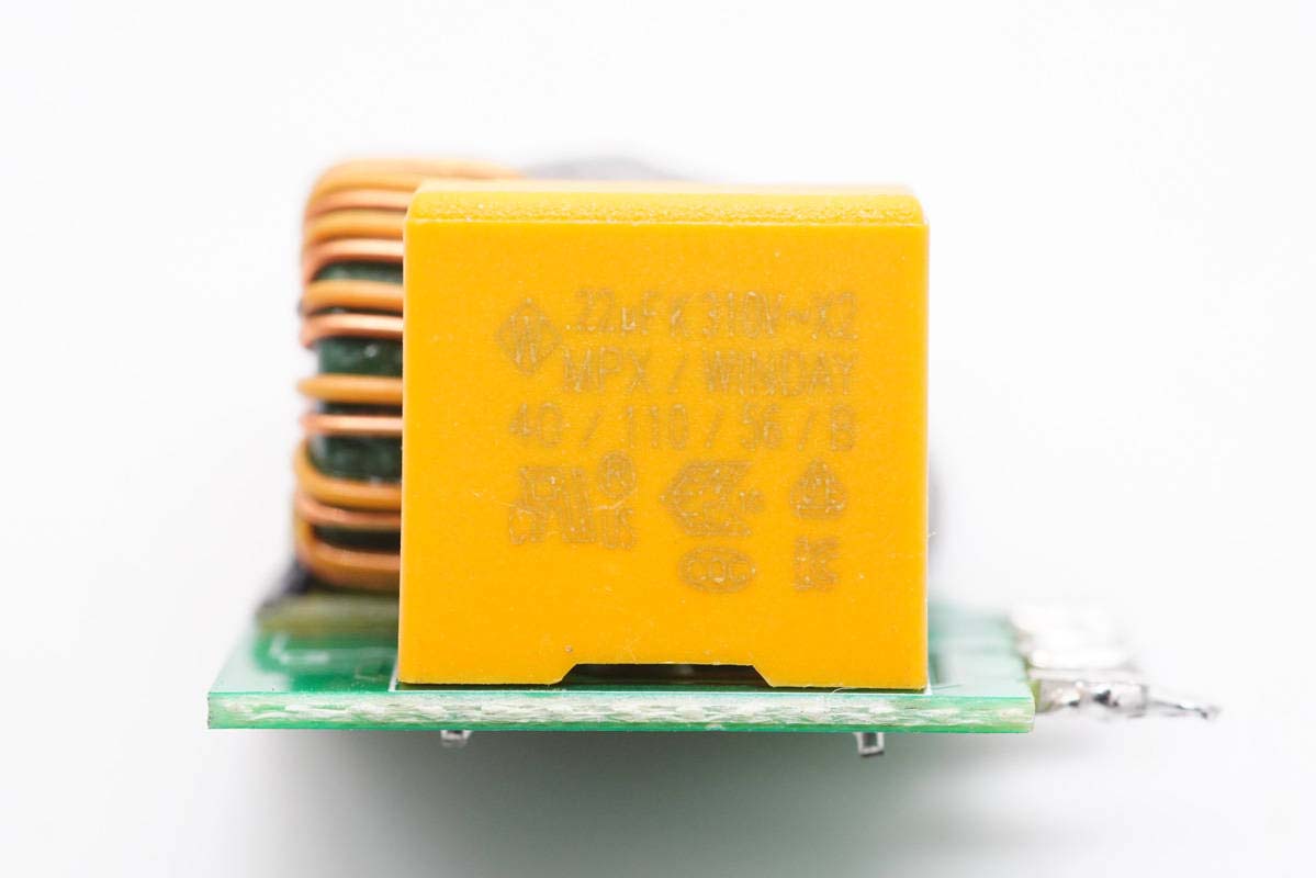 安规X电容特写,容量0.22μF。