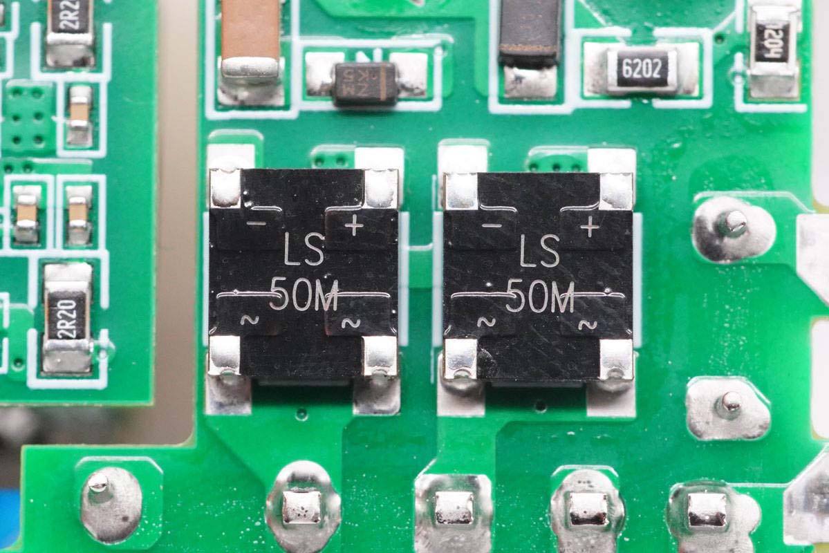 整流桥特写,使用两颗均摊发热。