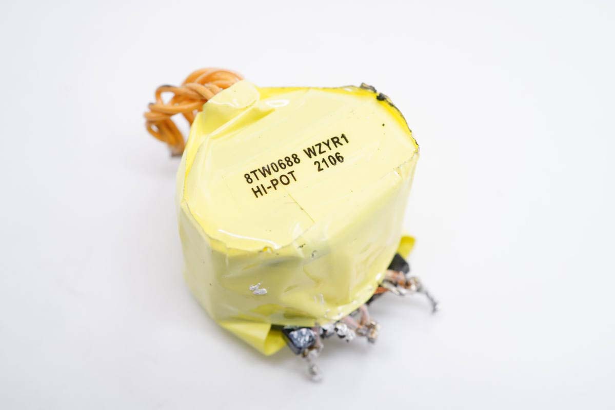 变压器特写,输出采用多层绝缘线,使用绝缘胶带严密包裹。