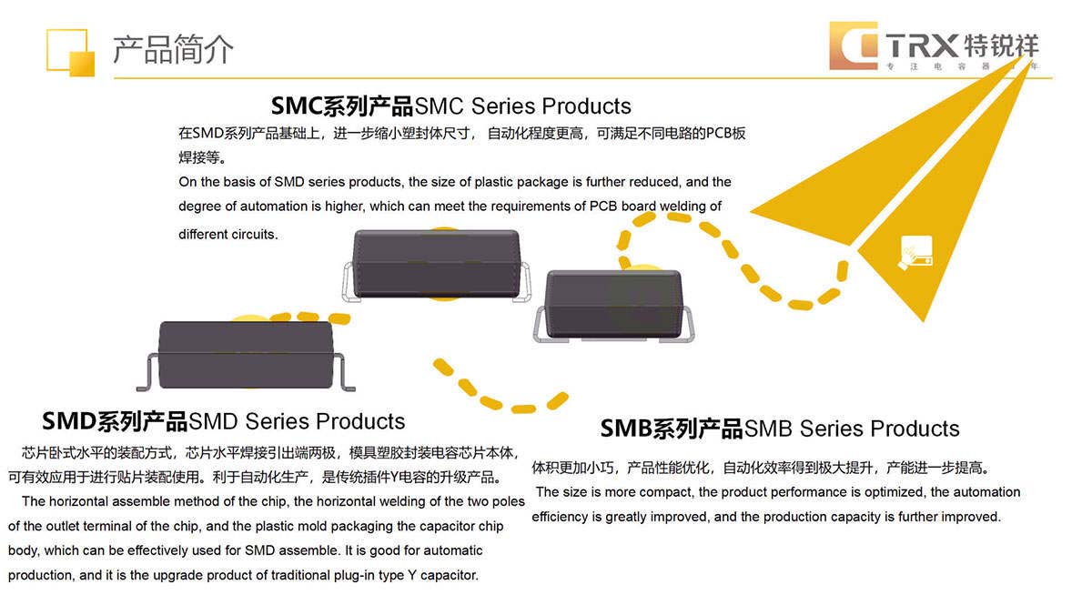 特锐祥专注于被动元器件的研发、生产及销售,注册资本1亿元。旗下有自主电容品牌两类:SMD TRX及DIP TY电容器,TRX将致力于陶瓷材料的研究,以拓展更多品类的应用,为客户提供更多的解决方案。