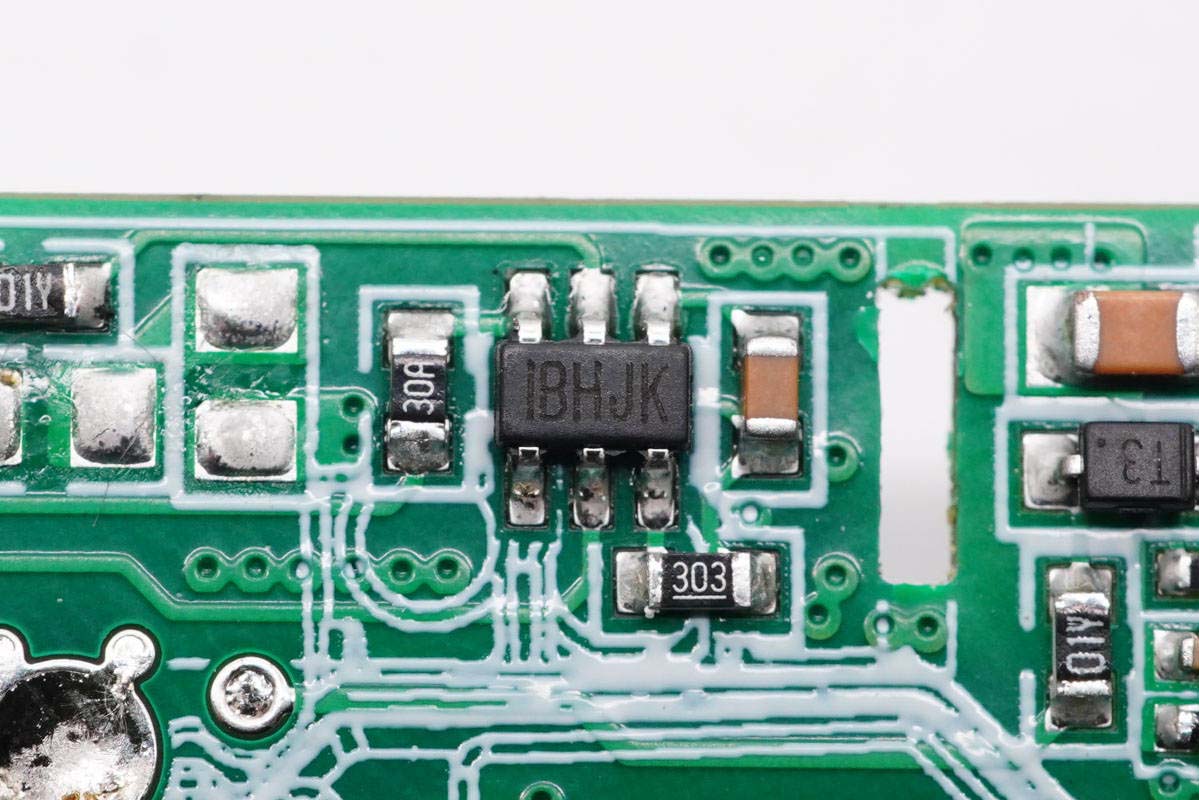 PCB板背面一览,初次级间横跨光耦和贴片Y电容,光耦左侧区域镂空。