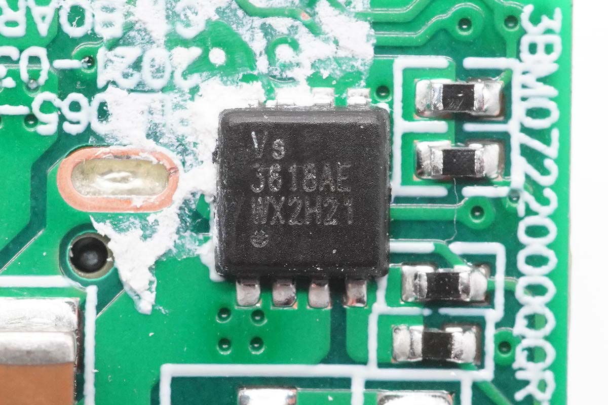充电器主控芯片为ON安森美NCP1342,这是一颗高频准谐振反激初级PWM控制器,内置主动X2电容放电和多重完善的保护功能,具有超低的待机功耗。