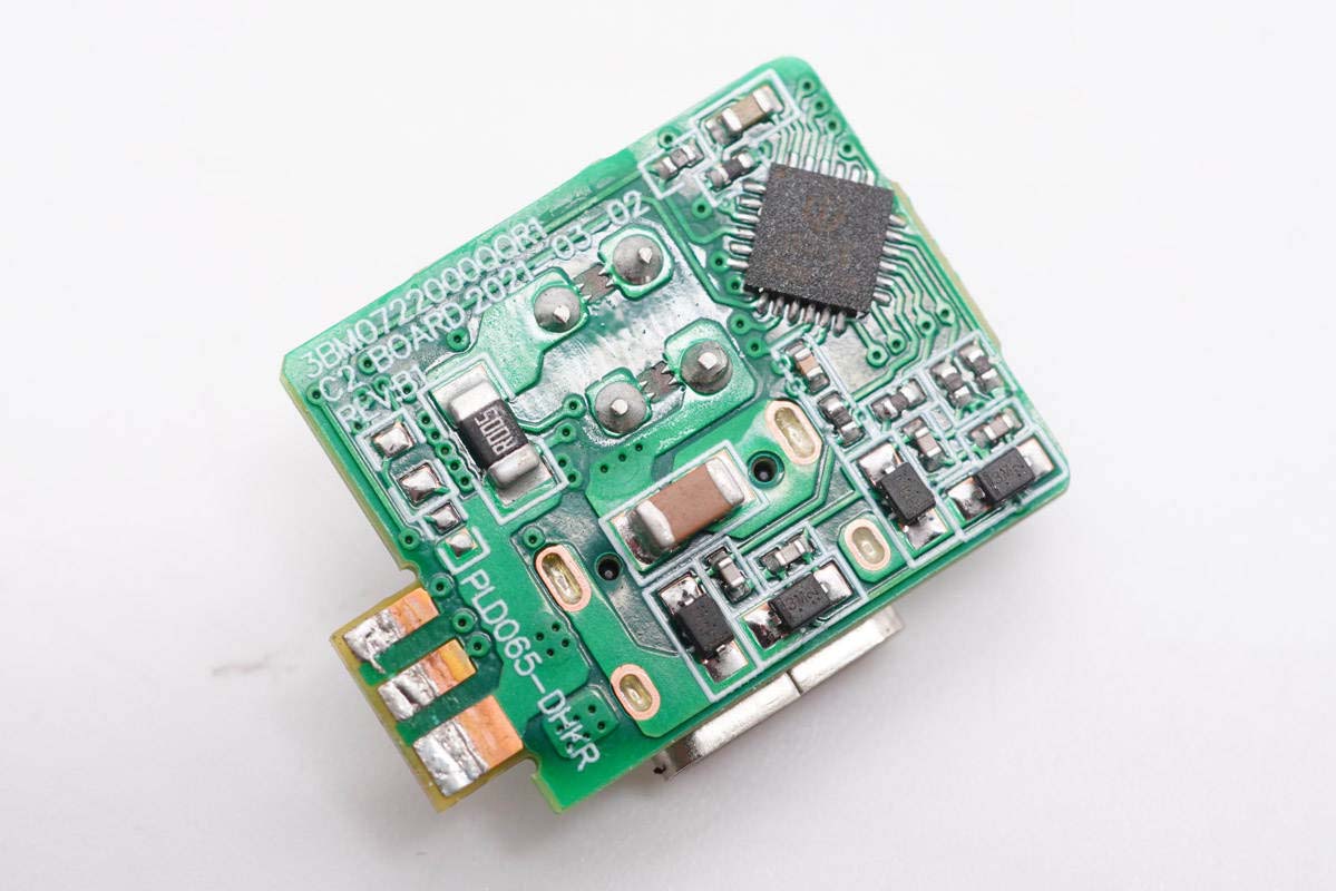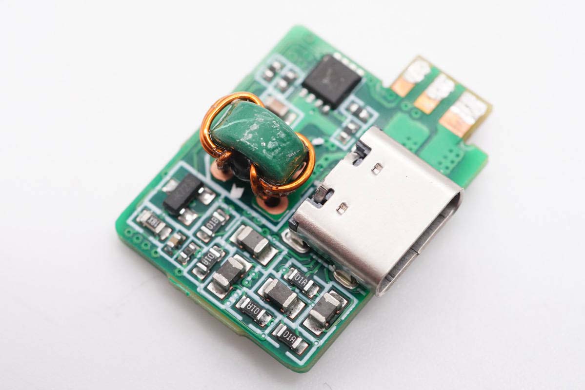USB-C2母座所在小板正面设有滤波电感、输出VBUS开关管。