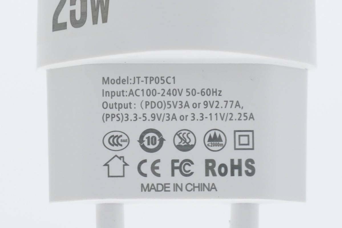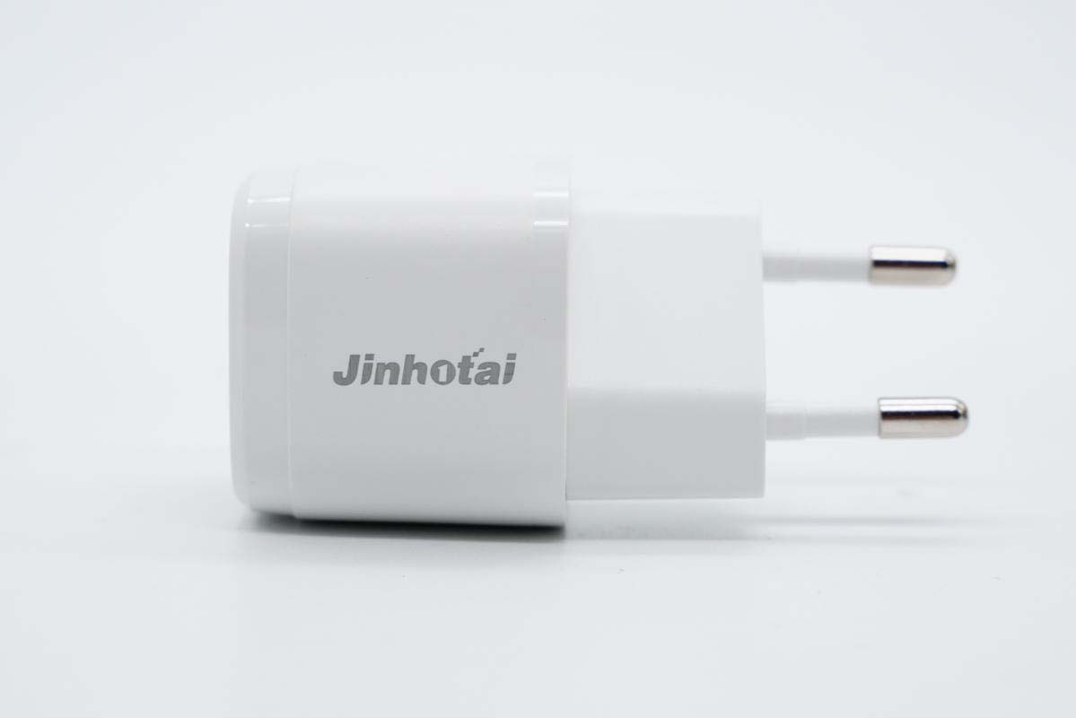 最近充电头网拿到了JinHotai品牌的一款迷你25W PD快充充电器,配备的是欧规长插脚以及单USB-C接口,支持最大9V2.77A快充,此外还支持PPS快充,整体兼容性很好。下面我们就对这款充电器进行详细拆解,看看产品做得如何。