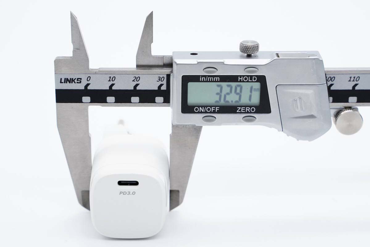 和苹果20W充电器直观对比,机身圆润,整体体积也较小些。
