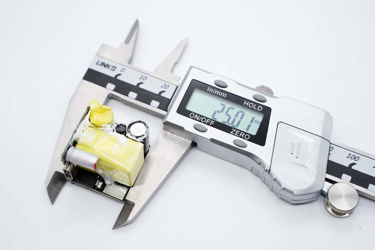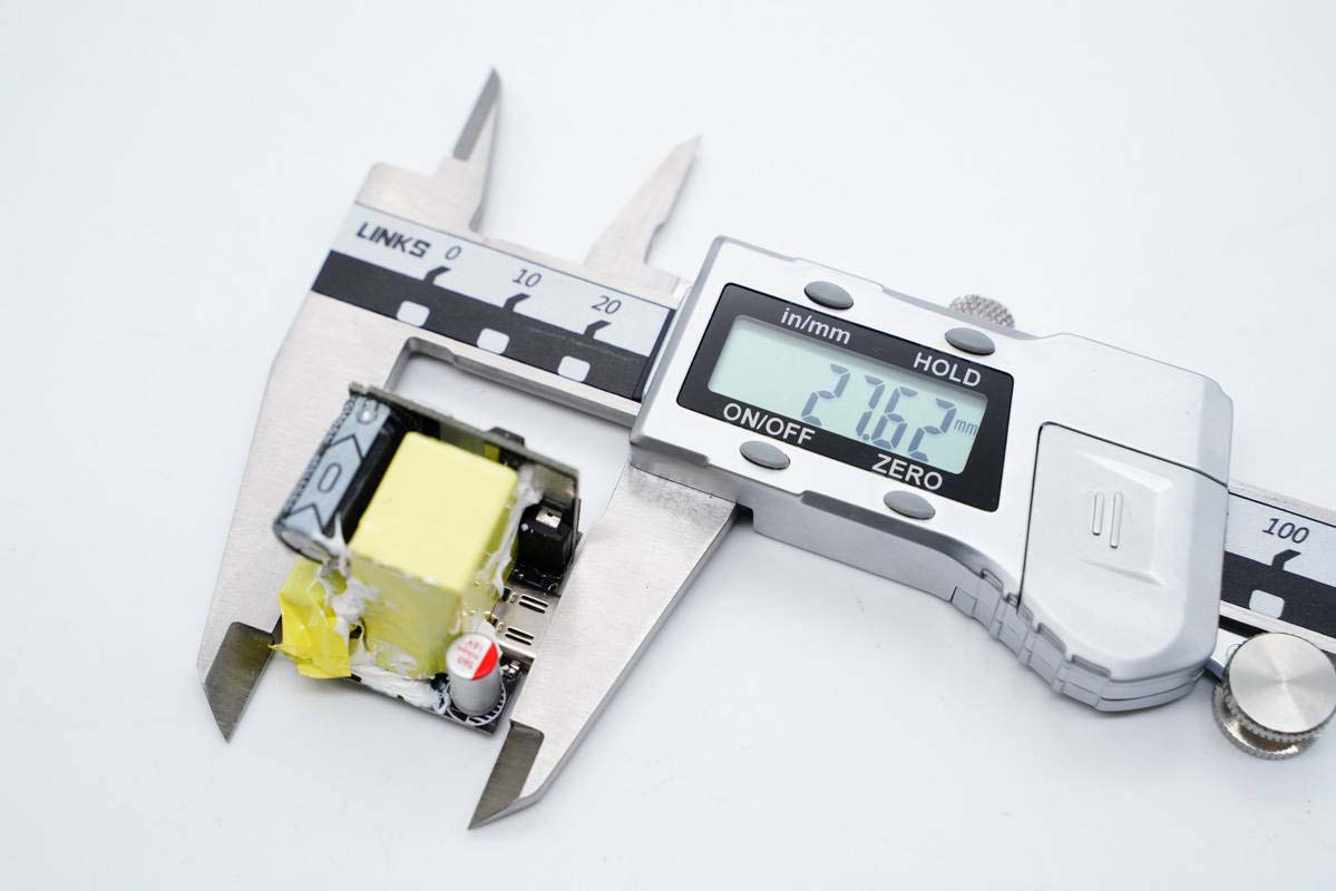 使用游标卡尺实测PCBA模块长度为27.62mm。
