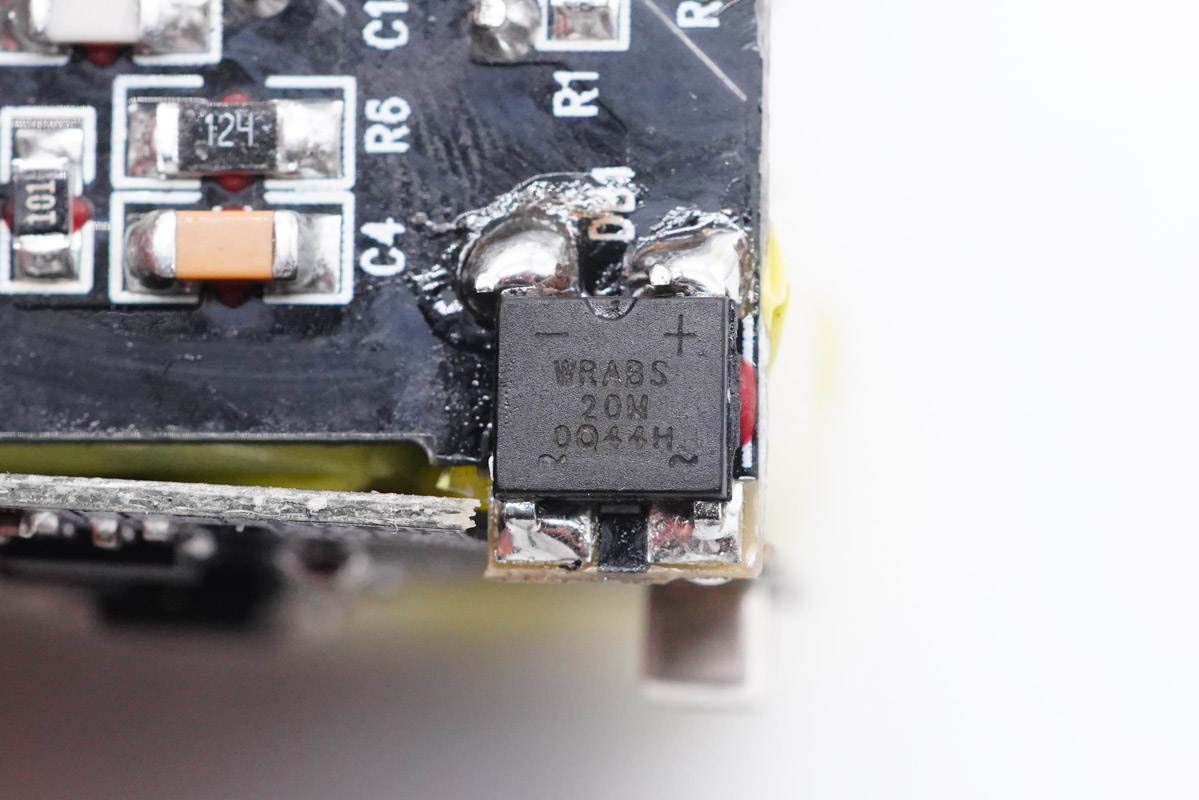侧边小板背面设有整流桥、PWM主控芯片和光耦。