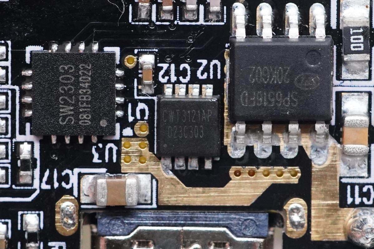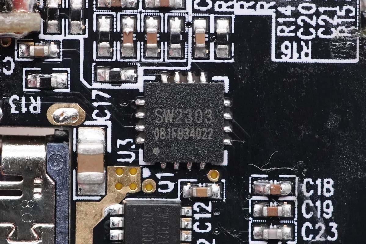 协议芯片采用珠海智融SW2303,通过高通QC5认证,是业内第一颗非MCU架构的QC5认证协议芯片。这是一款高集成度USB Type-C/Type-A接口快充协议芯片,支持PD、QC、FCP、高低压SCP、AFC、SFCP以及PE等主流快充协议;支持光耦反馈和FB反馈两种工作模式;支持4KV ESD HBM。