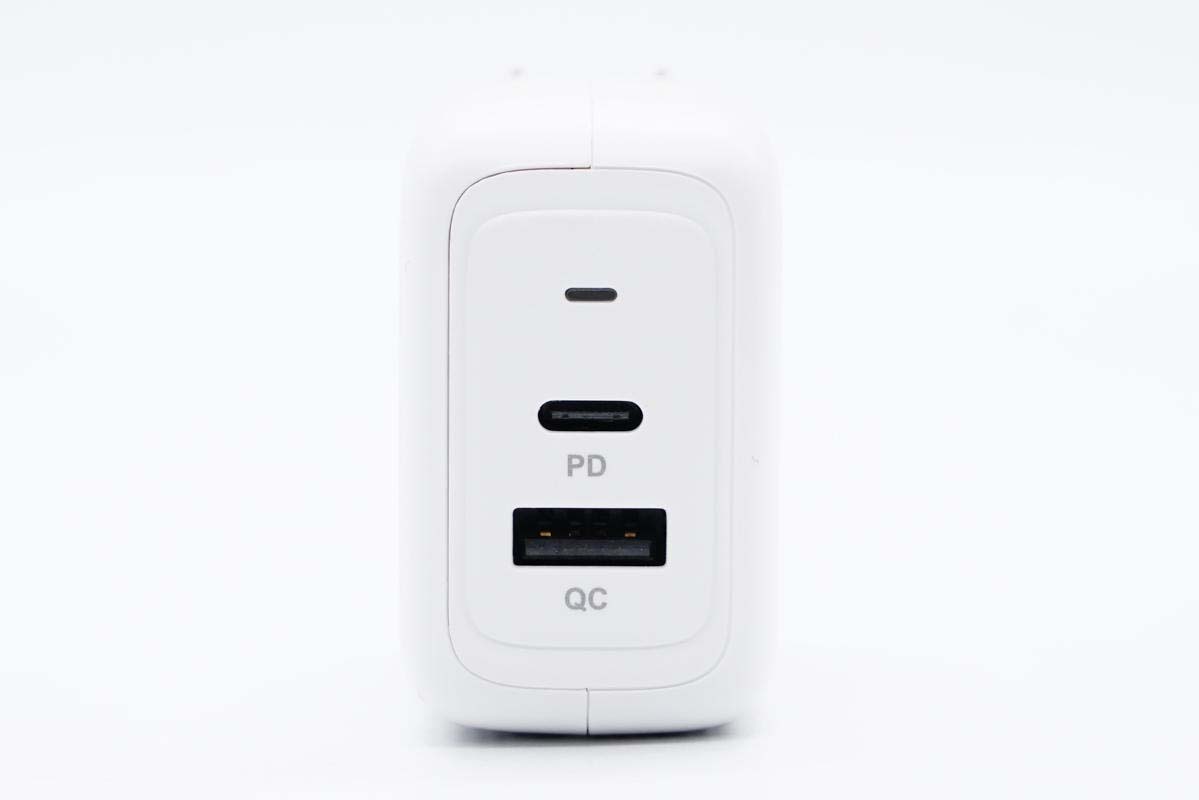 mophie这款65W氮化镓充电器从一侧看去趋于正方形,长宽相同。另外机身壳表面磨砂处理,边角弧面过渡,上手体验感好。充电器配备可折叠插脚,出差外带方便。另外配备1A1C两个万金油接口,可以兼容更多设备,最大65W快充则可以让设备快速满血复活。