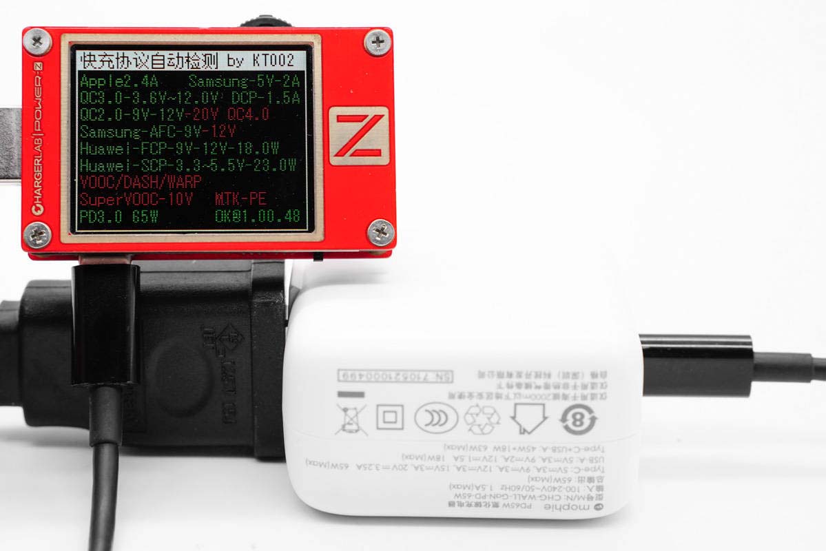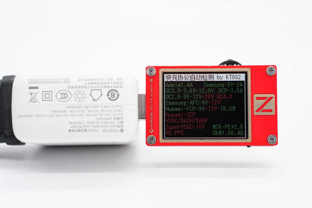 另外使用KT002检测USB-C口输出协议,显示支持Apple 2.4A、Samsung 5V2A、DCP协议,以及QC2.0/3.0、AFC、FCP、SCP、PD3.0快充协议。