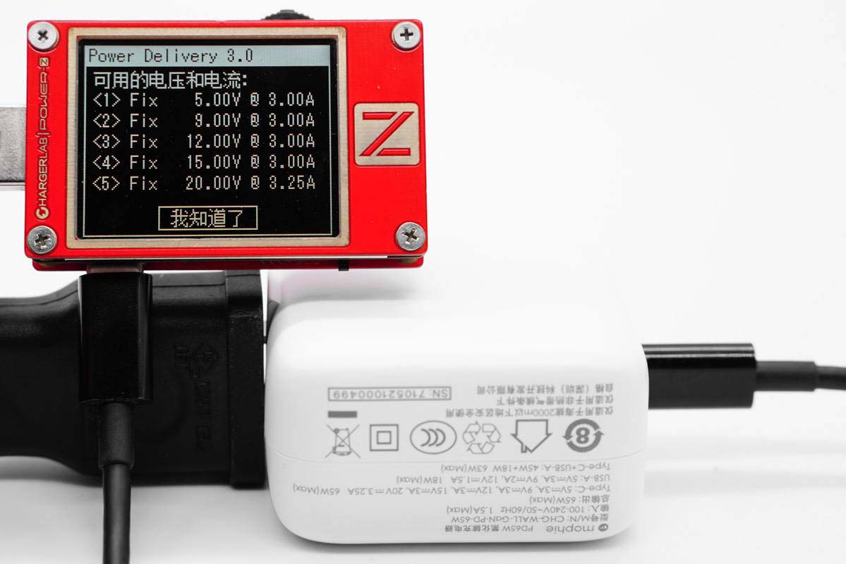 此外PDO报文显示USB-C口还具备5V3A、9V3A、12V3A、15V3A、20V3.25A五组固定电压档位。