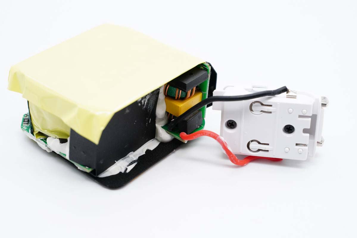 通过对充电器观察发现,mophie这款65W 1A1C氮化镓充电器采用开关电源通过光耦由协议芯片控制输出电压为USB-C口输出,USB-A口由升降压转换电压输出,两个接口由独立的协议芯片控制。下面从输入端开始深入了解整个电路设计情况。