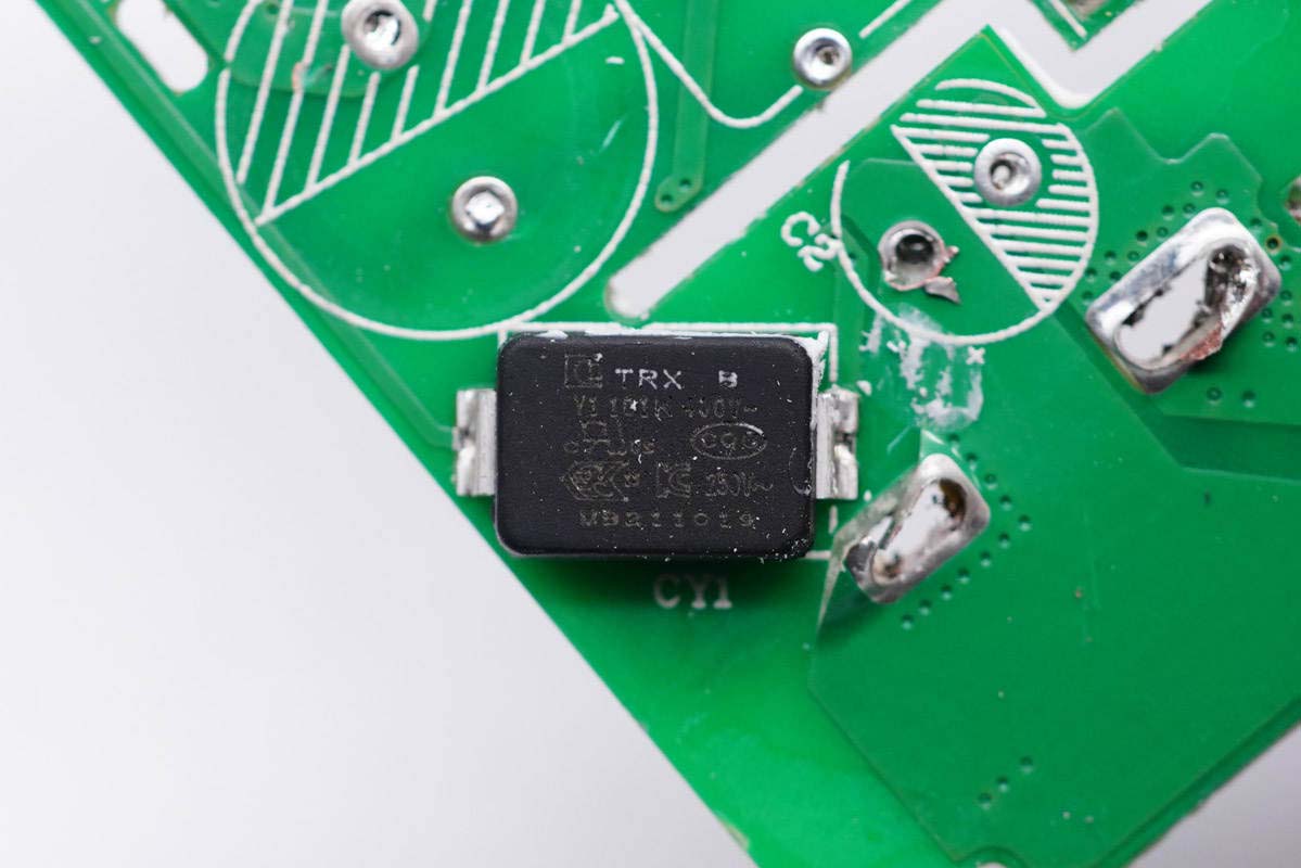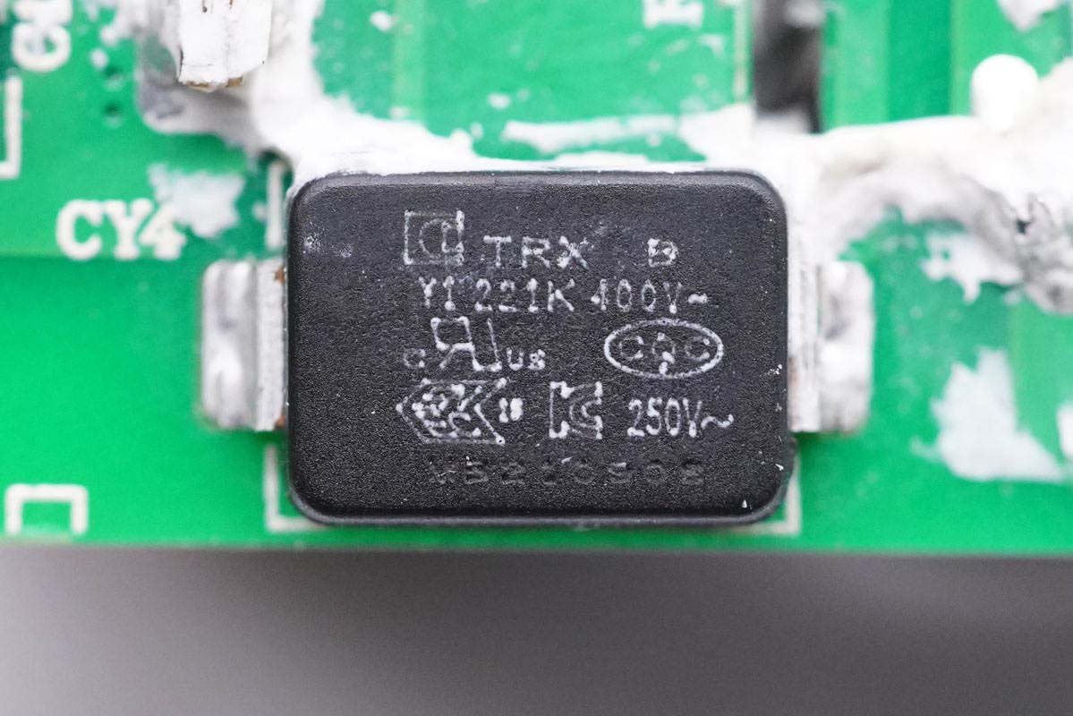 两颗电容为永铭KCX系列。这是永铭2019年推出的快充电源专用产品,其工作温度范围在-55℃~105℃,3000小时寿命,并具备抗雷击、低漏电流(低待机功耗)、高纹波电流、高频低阻抗等性能优势。