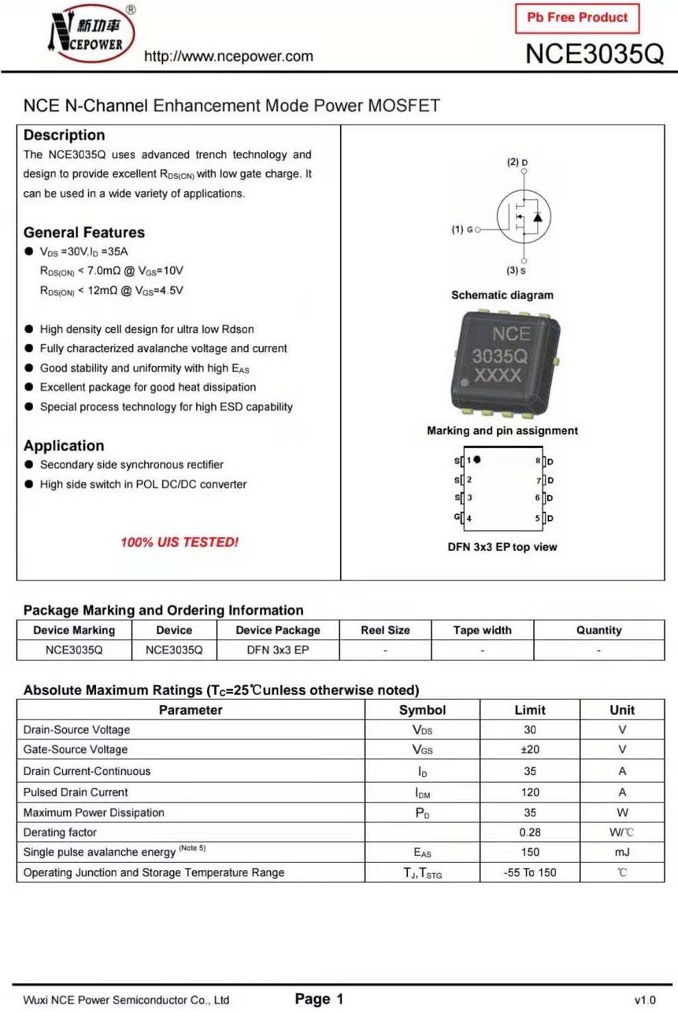 USB-C口输出VBUS开关管采用新功率NCE3035Q,NMOS,耐压30V。