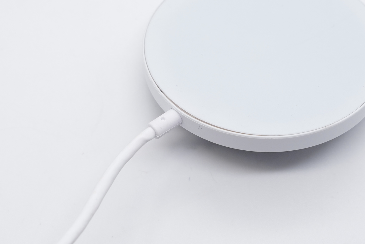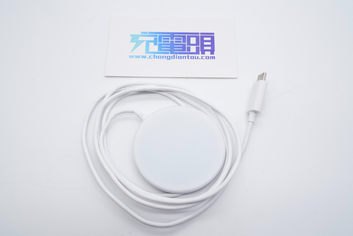 PYS鹏元晟最新推出的这款MagSafe磁吸无线充电器的外观为白色,常见的配色,磁吸无线充电板加连接线配置,输入端采用USB-C接头,支持正反盲插,用户使用时无需刻意关注接口正反的问题。
