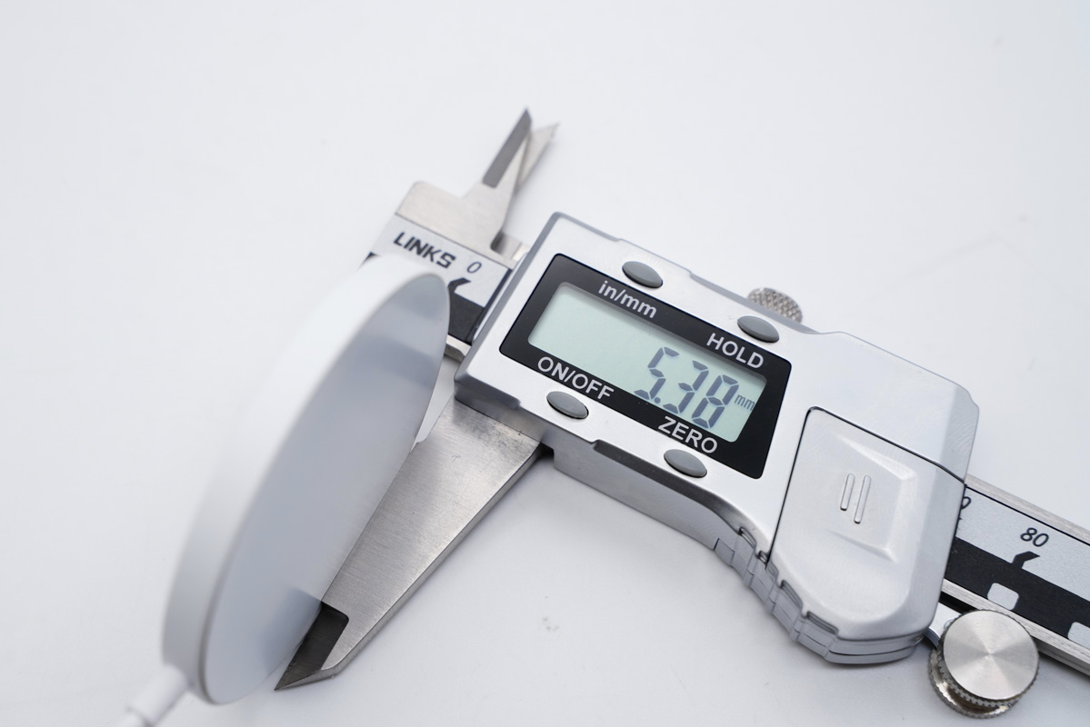 PYS鹏元晟磁吸无线充电板的厚度约为5.38mm。