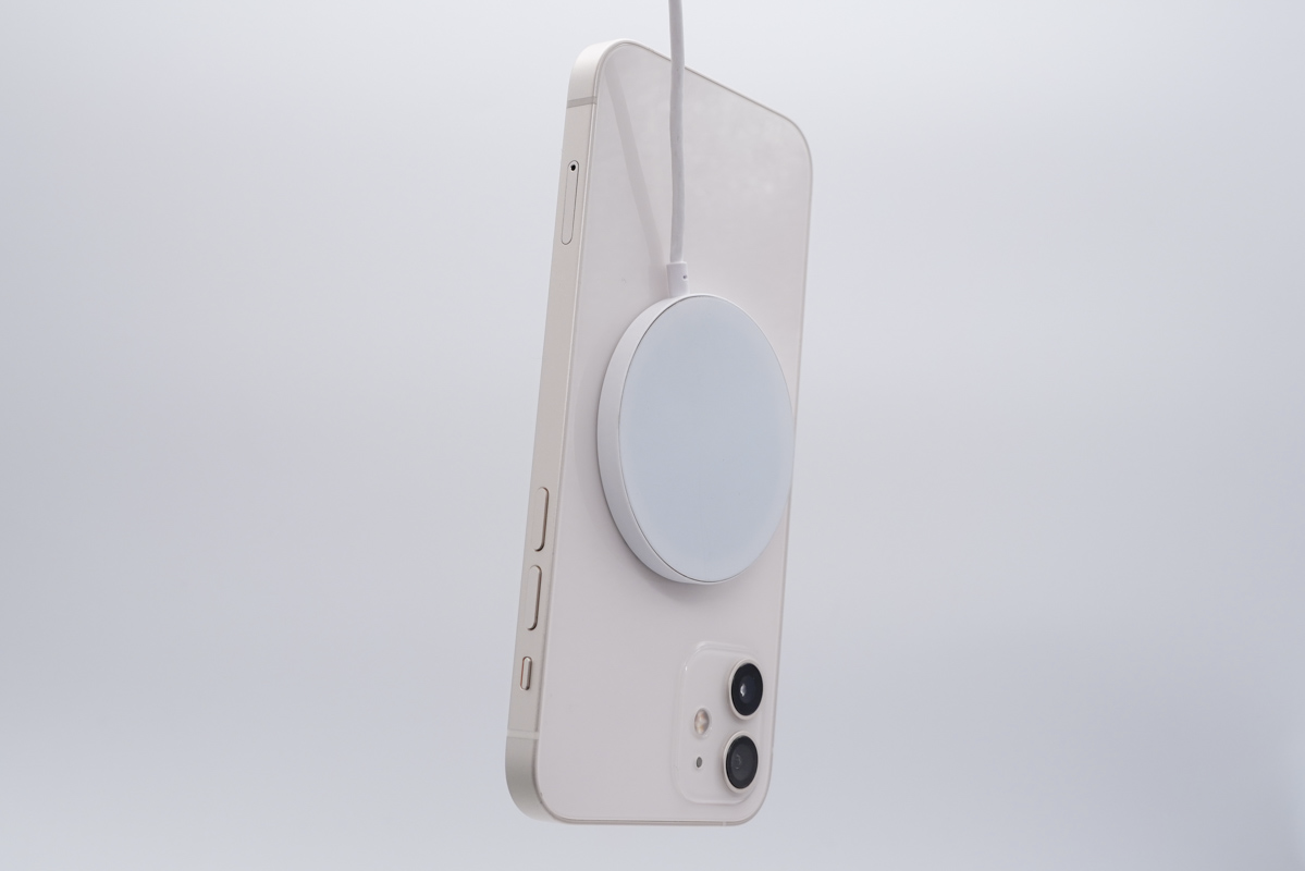 至于磁吸效果如何,小编实测将磁吸无线充电板贴合在iPhone 12的背面,可以借助磁吸轻松提起手机,吸力很强。