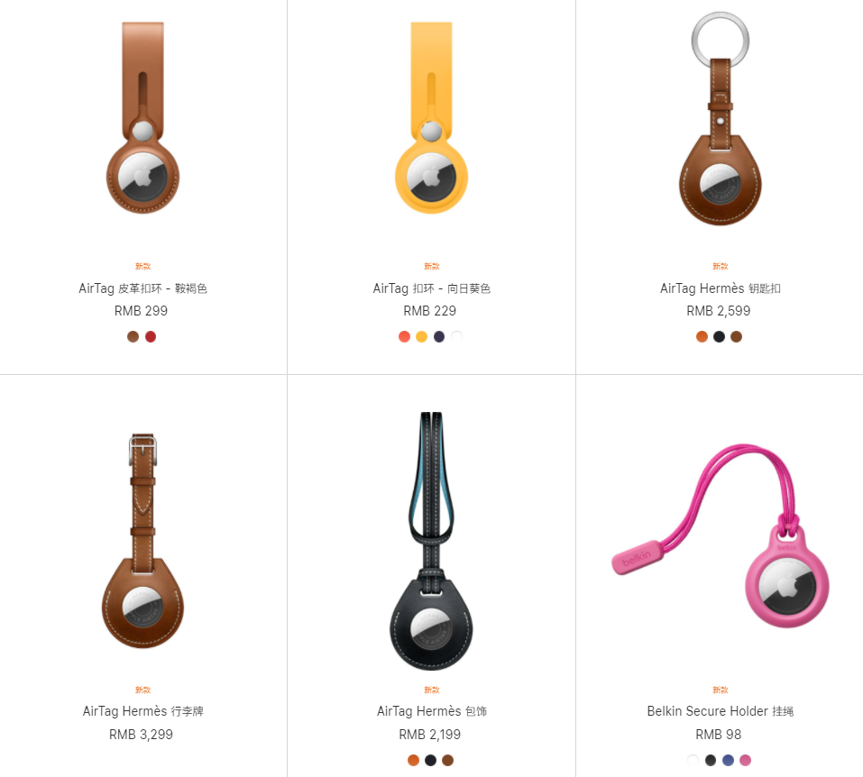 放眼苹果官网,最贵的AirTag Hermès行李牌售价约为3299元人民币。当然也有便宜的,299元是主流,最低是98元的Belkin Secure Holder挂绳。