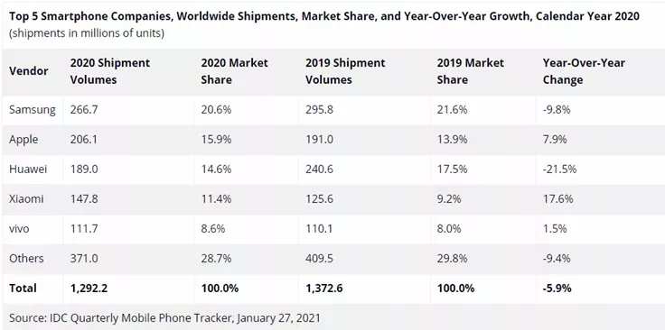 而根据权威市调机构IDC发布的最新数据显示,2020年全球智能手机出货量达12.9亿部。位于粤港澳大湾区手机品牌中,华为、vivo的出货量分别为1.89亿和1.117亿台。加上湾区其他手机厂商出货量,2020年粤港澳大湾区手机出货总量至少在4亿台以上,占据全球手机出货量的31%,成为了全球智能手机出货量最大的地区。