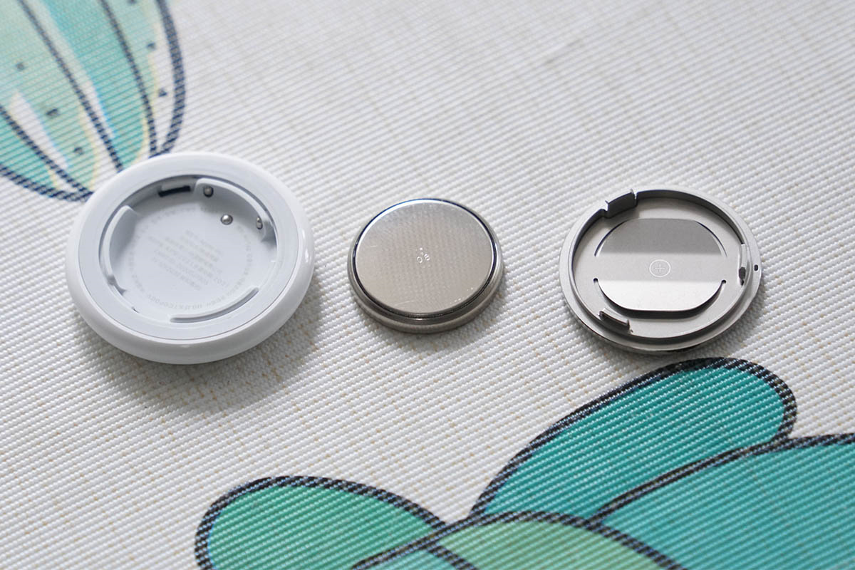 AirTag的供电来自一颗CR2032纽扣电池, 在低功耗和加密蓝牙的加持下,官方称续航可达一年。