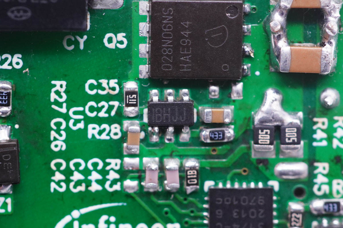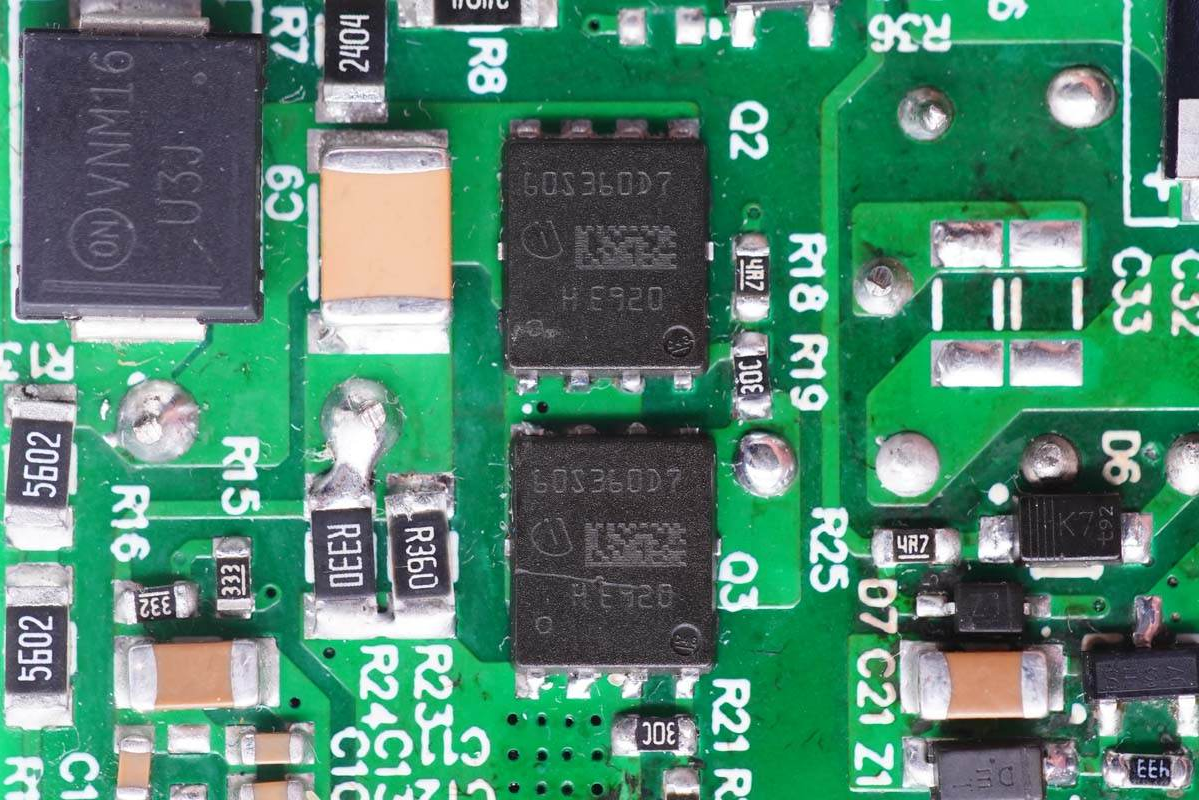 用于非对称反激的半桥开关管,英飞凌IPLK60R360PFD7,耐压600V,导阻360mΩ。