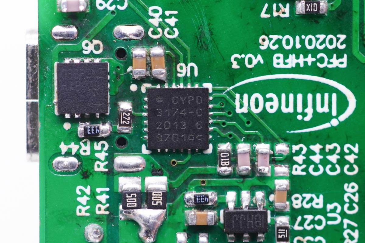 英飞凌这款100W的参考设计,协议芯片采用CYPD3174,这是一颗协议支持广泛的协议芯片。