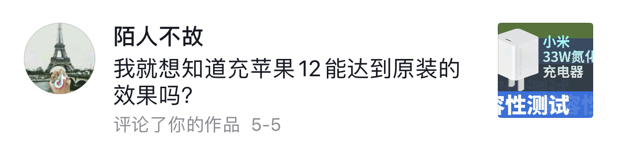 7、小米33W氮化镓充苹果iPhone 12能达到原装的效果吗?