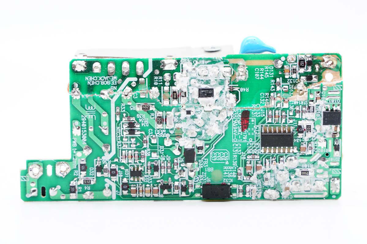 PCB板背面一览,初级次级分界明显,板子在拆解过程中损坏得比较严重。