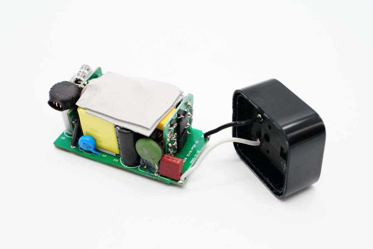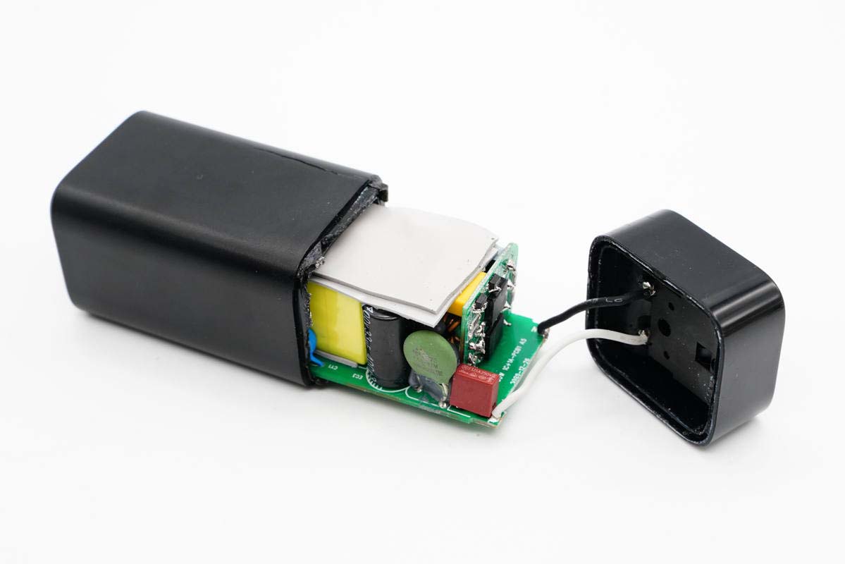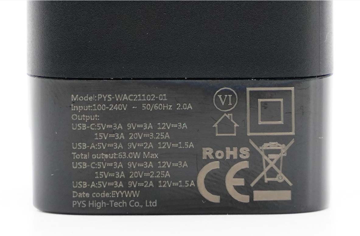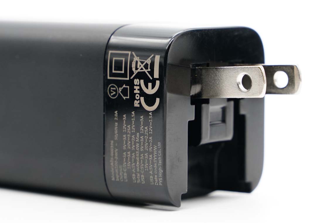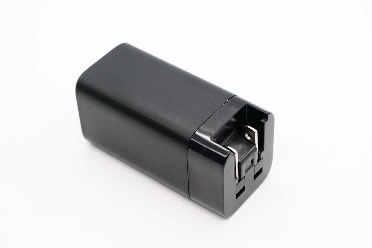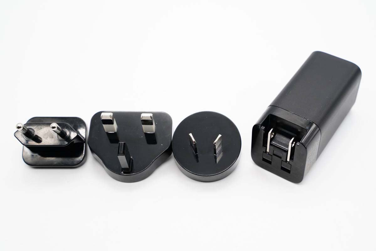 而对于火爆的65W氮化镓快充市场,鹏元晟同样推出一款65W氮化镓快充供客户选择,这款产品配备1A1C双输出接口,支持最大65W快充,也支持45W+18W双口同时快充,满足笔电手机同时充电需求。产品另一大优势便是除了配备可折叠美规插脚外,还可组装欧、英、澳等规格插脚,极大便利用户出差使用。下面充电头网就对这款充电器进行详细拆解,看看产品用料做工如何。
