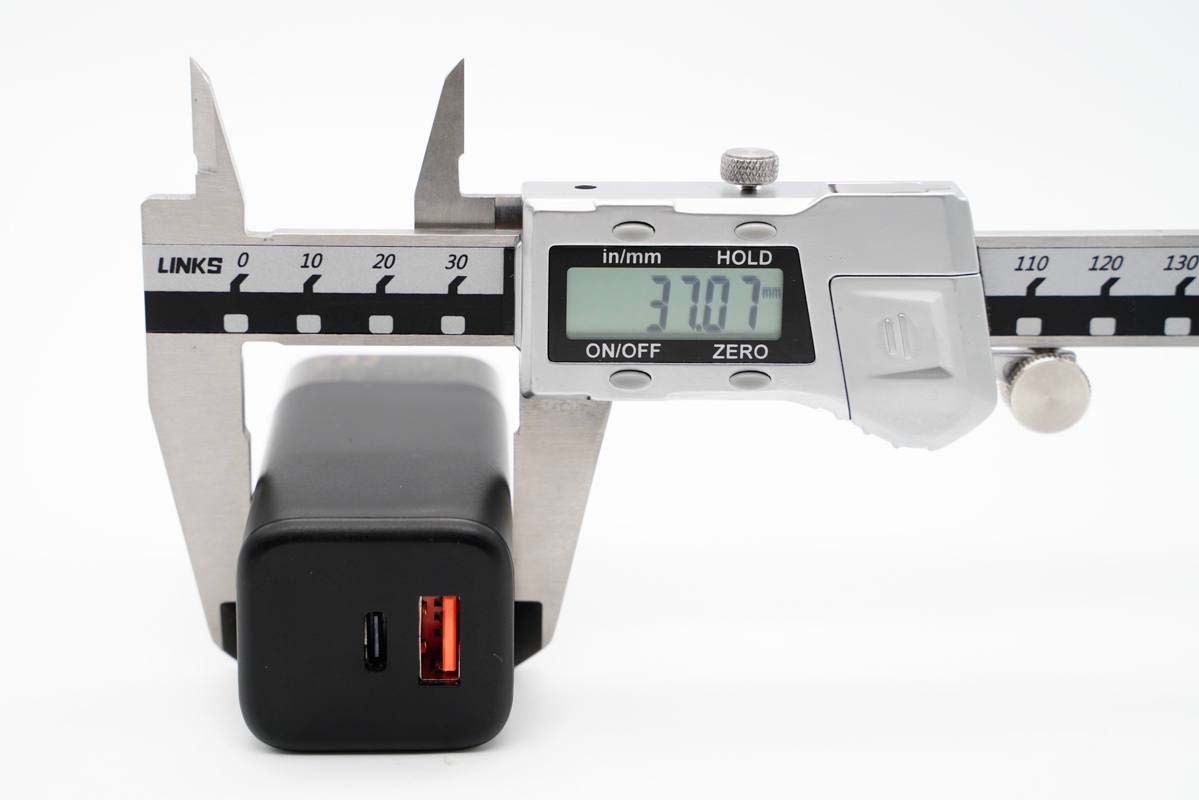 厚度为37.07mm。通过三维可以算得充电器体积约为92.5cm³,进而可以算得功率密度约为0.7W/cm³。