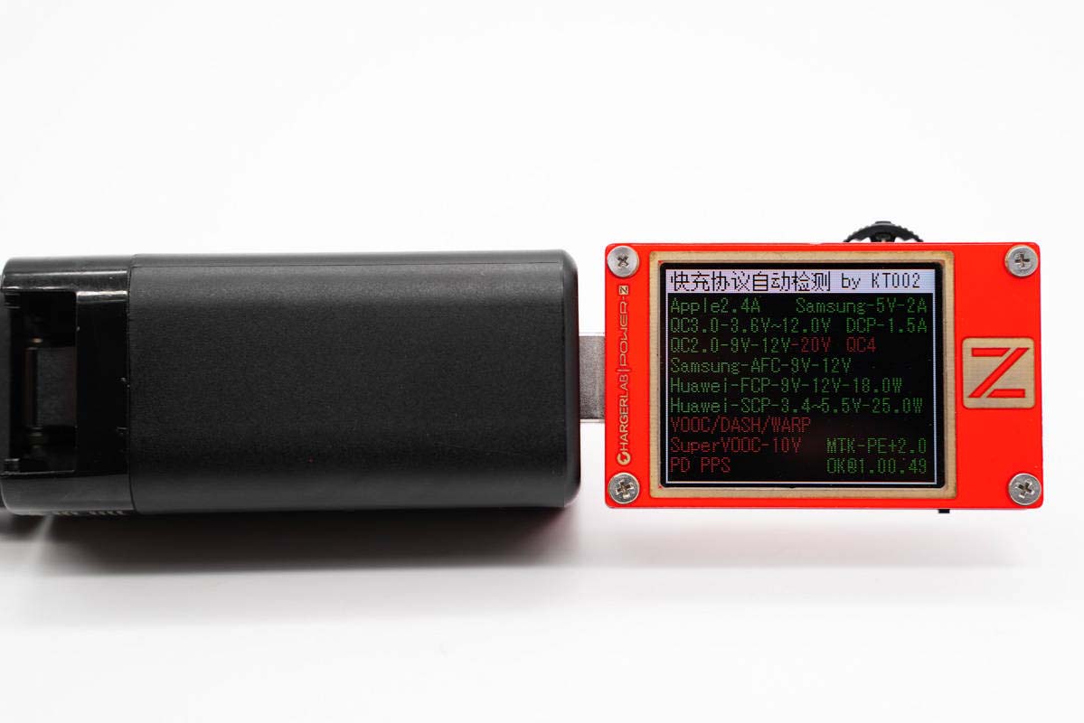 使用KT002测得USB-C口支持Apple 2.4A、Samsung 5V2A、DCP协议,以及QC2.0/3.0、AFC、FCP、SCP、PE2.0、PD3.0快充协议。