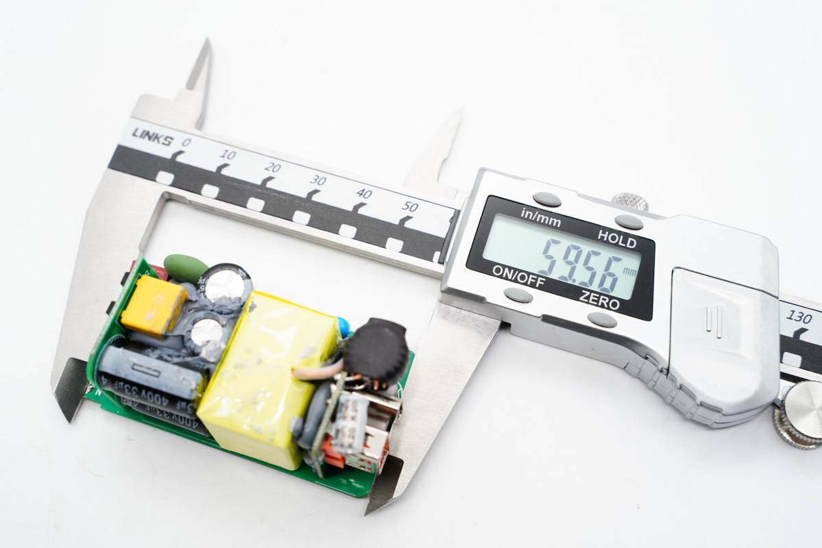 使用游标卡尺测得PCBA模块长度为59.56mm。