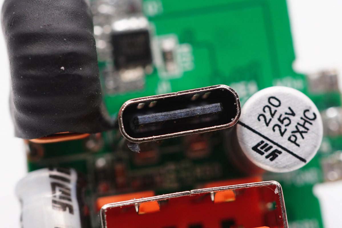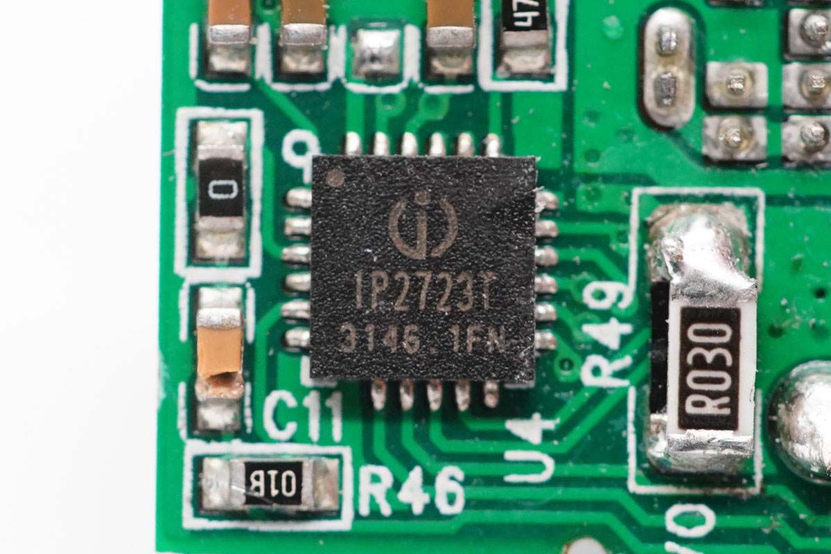 USB-C口协议芯片采用英集芯IP2723T。该芯片已通过USB IF协会PD3.0 PPS认证,TID:3135,是一款集成多种协议、用于USB输出端口的快充协议IC。支持多种快充协议,包括USB TypeC DFP、PD2.0/3.0、PPS 、HVDCP QC4、QC4+、QC3.0/2.0、FCP、SCP、AFC、MTK PE+ 2.0/1.1、Apple 2.4A、BC1.2以及三星2.0A。为适配器、车充等单向输出应用提供完整的TYPE-C解决方案。此外IP2723T具备高集成度与丰富功能,在应用时仅需极少的外围器件,有效减小整体方案的尺寸,降低BOM成本。