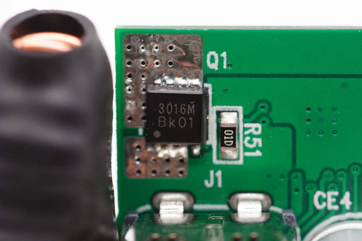 主板背面一览,可以看到组成开关电源的初次级控制器以及对应的MOS管,光耦横跨在初级次级之间。